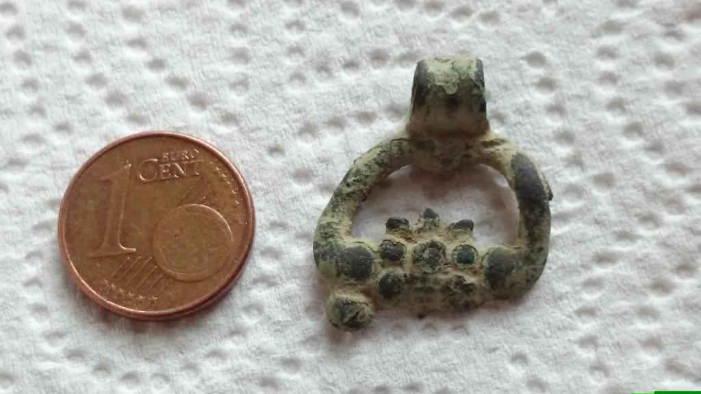 Hab dieses kleine Teil gefunden. Würde sagen das es ne Schnalle ist aber die größe macht mich bisschen skeptisch.