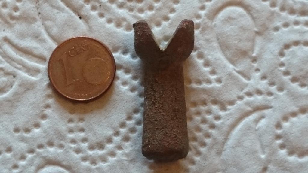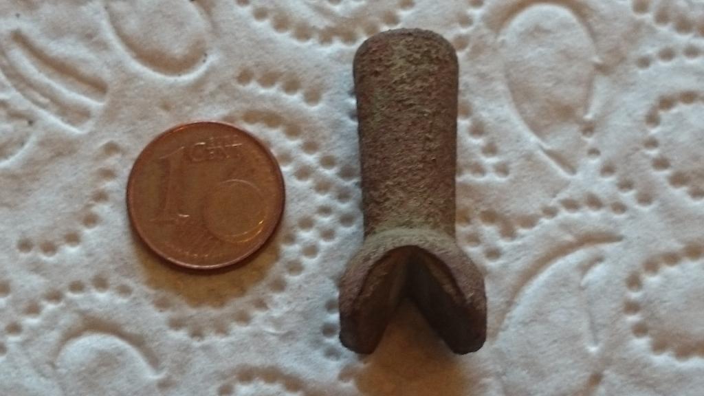 Hab dieses Teil gefunden. Hab keinen Plan was das ist. Ist ziemlich schwer. Kupfer müsse mit drin sein. Sieht wie ne Art Stempel aus aber zum stempeln ist ja unten nix dran