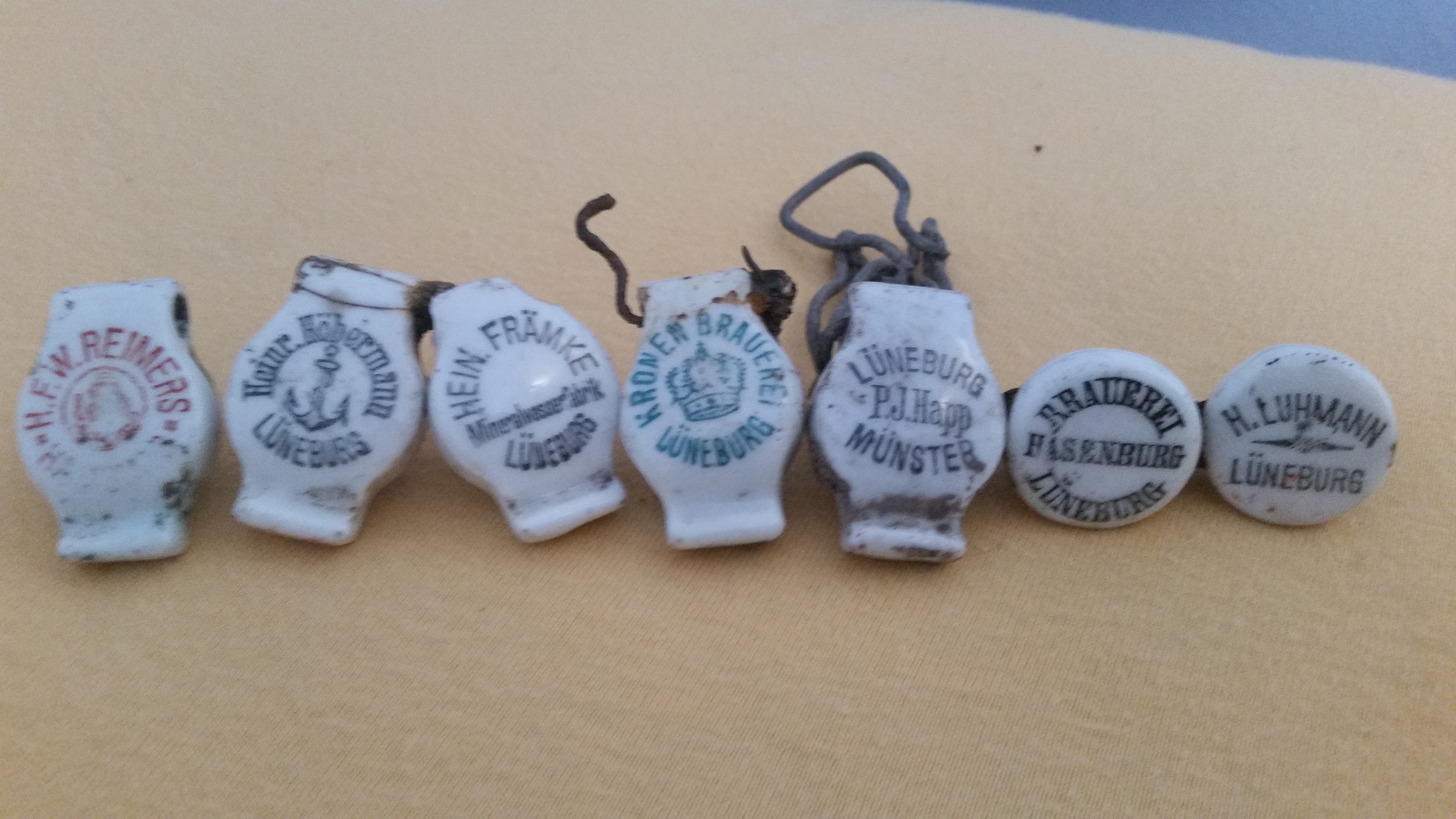 Hab auf einer Baustelle diese alten Verschlüsse gefunden. Daneben waren auch viele alte Flaschen. Die meisten aber leider vom Bagger kaputtgemacht.
