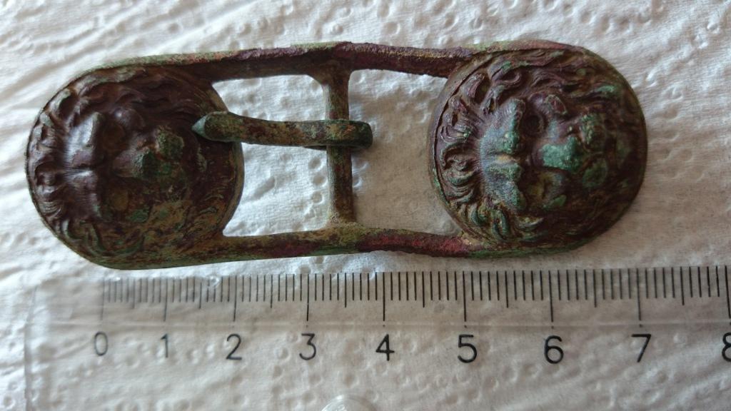 Habe diese schöne Schnalle gefunden. Vermute das sie für Hosenträger oder sowas in der Art war. Versilbert müsste sie auch gewesen sein. Man erkennt kleine Silberreste.