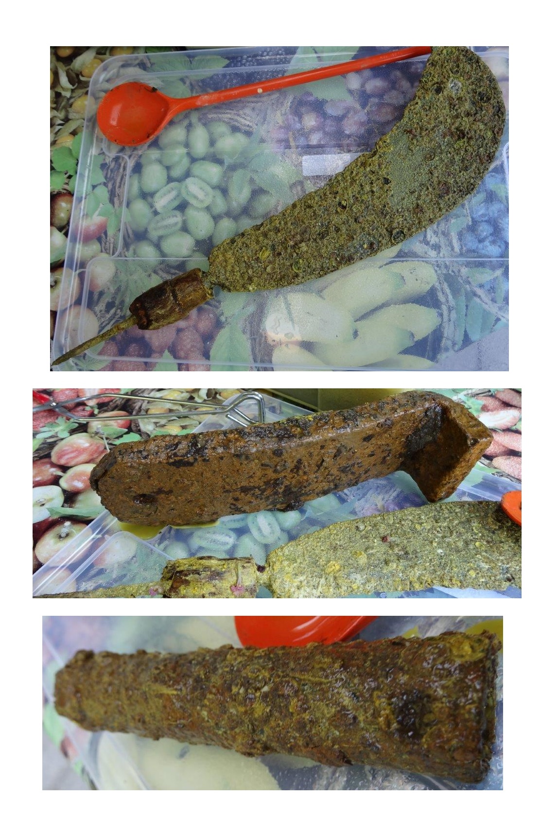 3 Metallfunde (Hippe?, unbekannt, unbekannt)