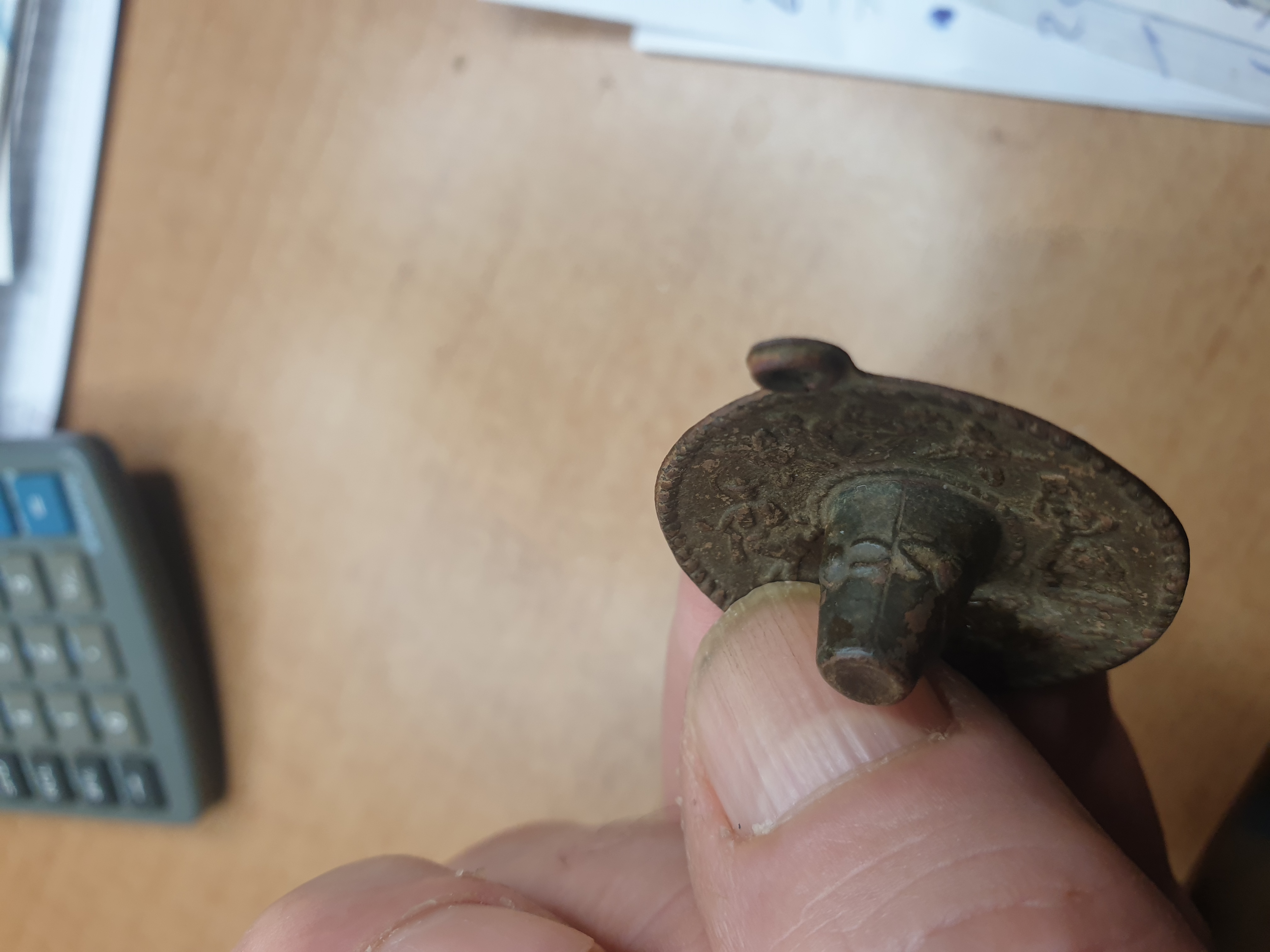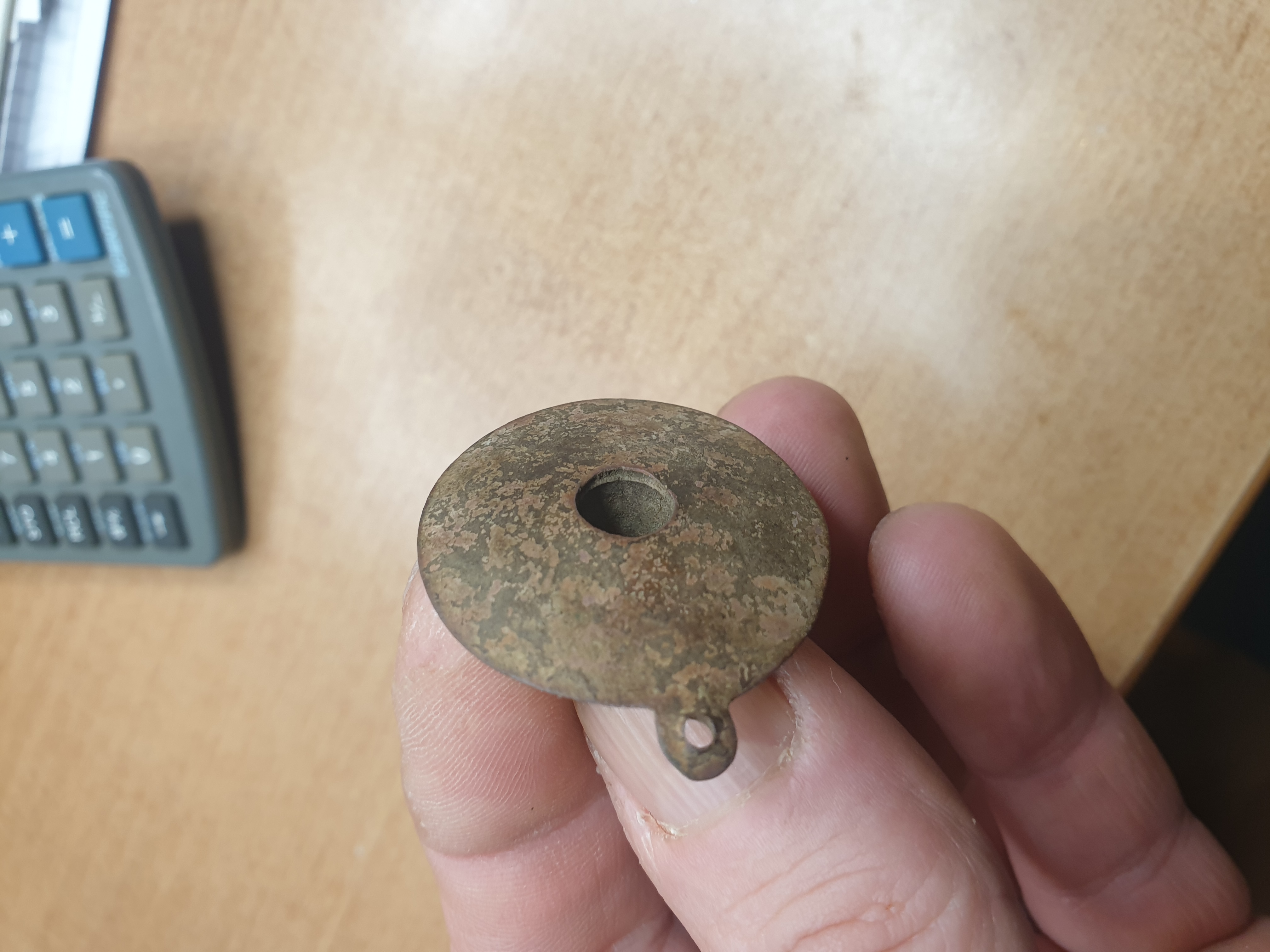 Habe dieses Teil heute beim umgraben gefunden, vielleicht kann mir einer helfen, was es sein könnte. Anfangs dachte ich es wäre eine Art Pfeiffenkopf, aber da wäre die Öse vöverkert. Es hat einen Durchmesser von 3 cm, und hat echt schöne Verzierungen. DANKE VORAB FÜR EURE Hilfe
