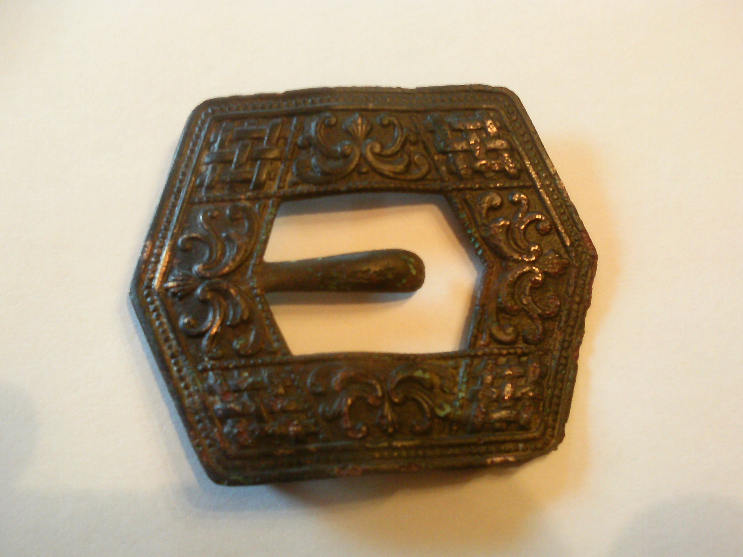 Breite rund 7cm Höhe etwa 6cm. Der Dorn ist fest mit dem Metall verbunden und nicht beweglich.