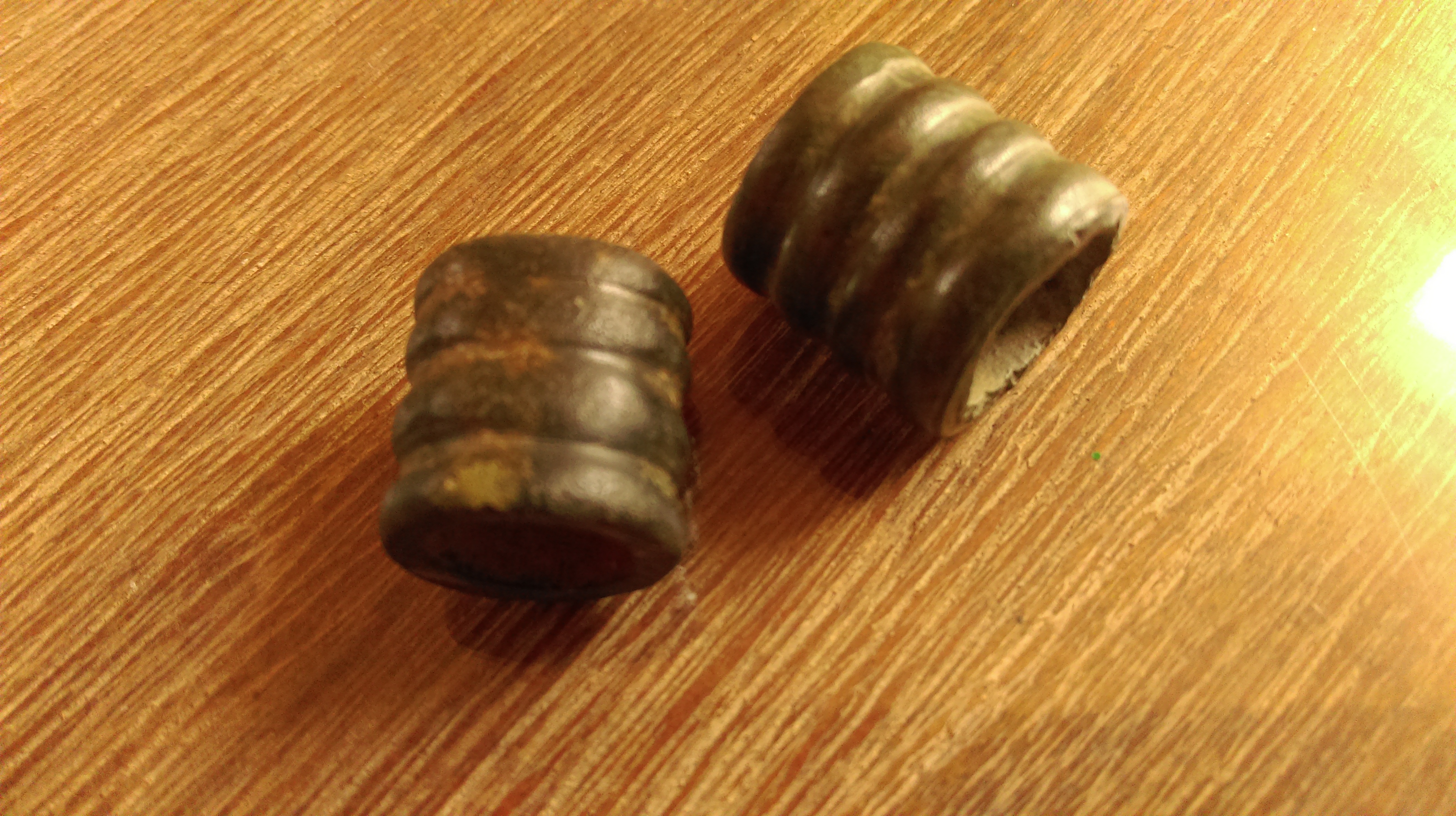 Habe diese beide Teile innerhalb von einer Woche auf einem Acker gefunden. Sie bestehen aus Bronze und einer Länge von 15 mm und jeweils einen Durchmesser von 15 und 12 mm.