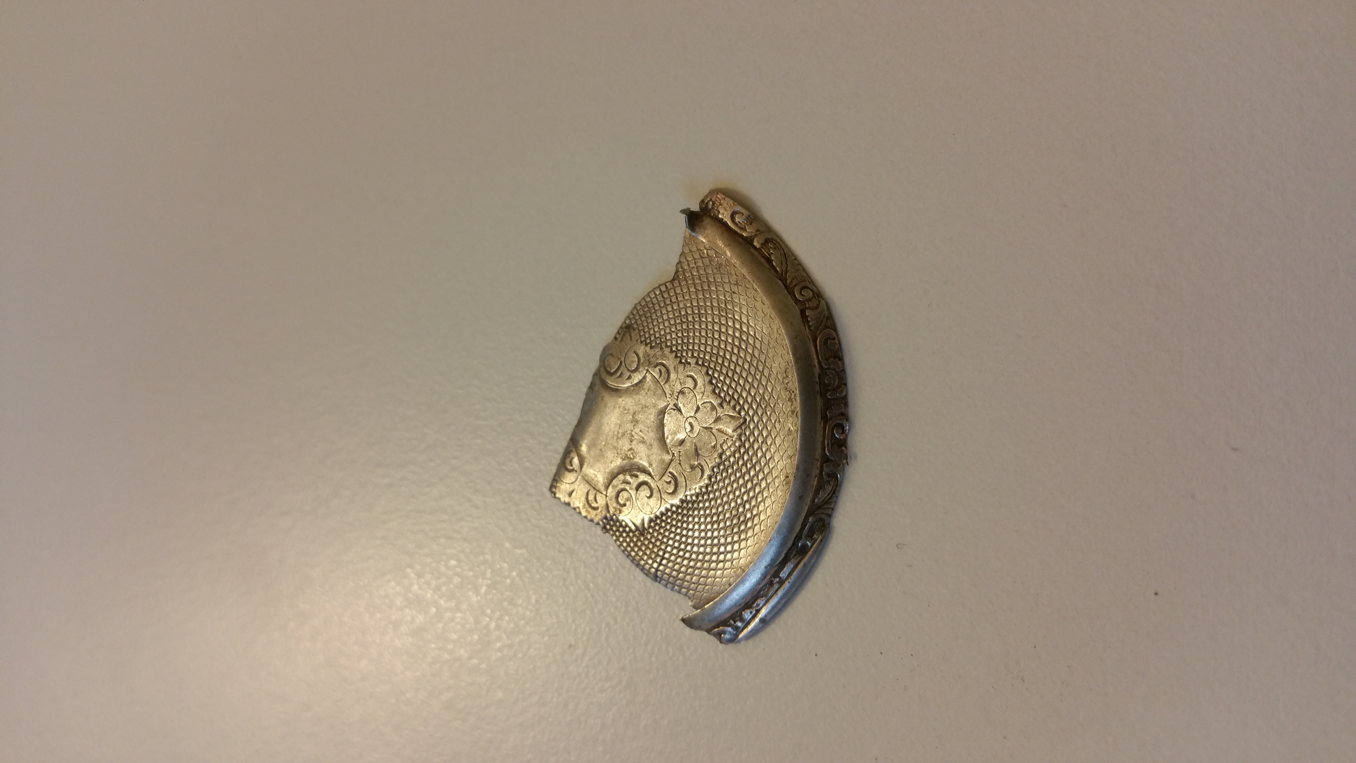 Zum Vergleich mal noch ein Bild kurz nach dem Fund... Übrigens hatte ich an etwa der selben Stelle noch etwas gefunden, was sich als Deckel einer Taschenuhr entpuppt hat. Habe sie durch die Aufschrift auf der Innenseite bei Google ausfindig machen können. Leider ist es nur ein kleiner Teil vom Ganzen :(