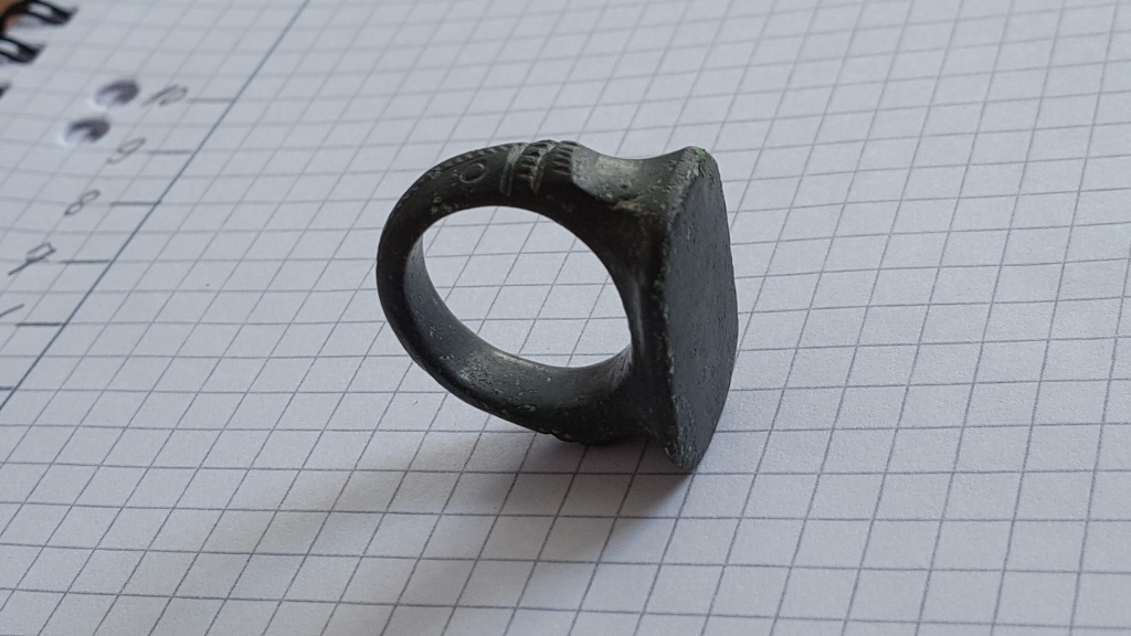 ich habe einen Ring aus Bronze mit Verzierungen ans Tageslicht befördert.