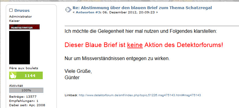 Genau der gleiche Fall wie bei dem im DF ausgeknobelten "Blauen Brief" von Walter F. Der hat auch zu mächtig viel Ärger geführt und C.N. durfte bei der Polizei antanzen. Von daher sollte das DF ganz kleine Brötchen backen und die ständige Häme einfach sein lassen.