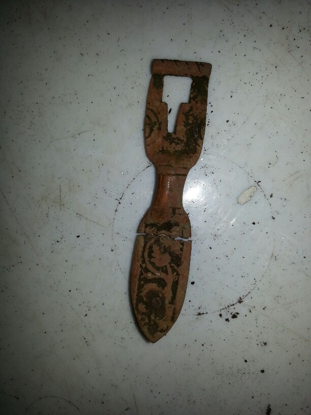 vermutet wird von einer alten kiste oder Taschen ein Verschlussteil!!??