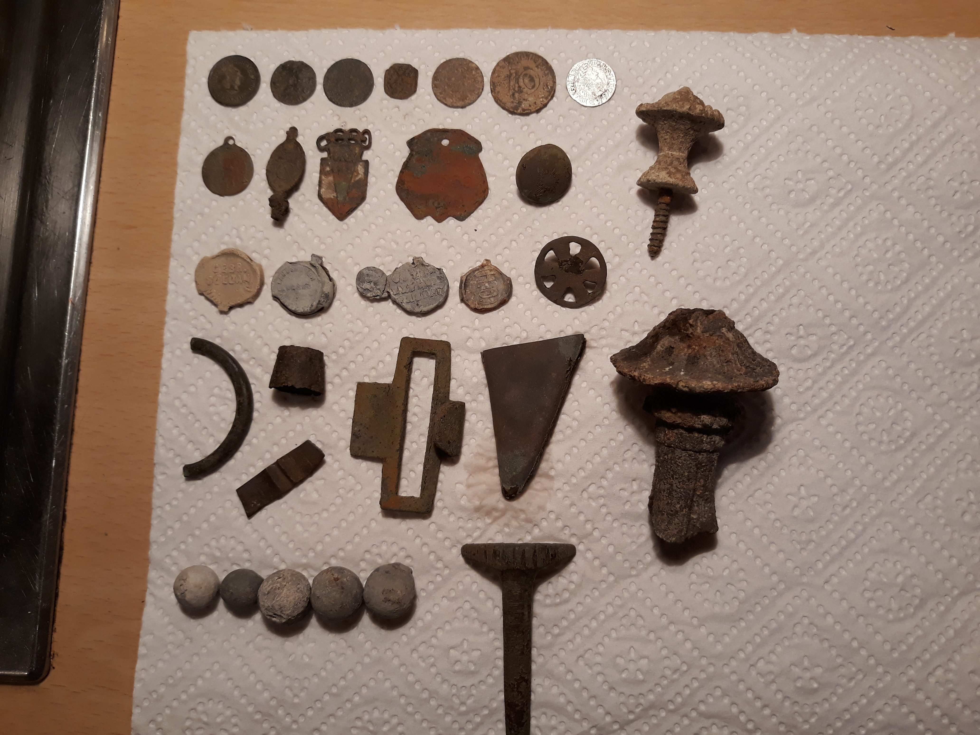 heute eine super schöne Silberne gefunden von 1625, außerdem wieder einen Sonnenradknopf und weiteres.