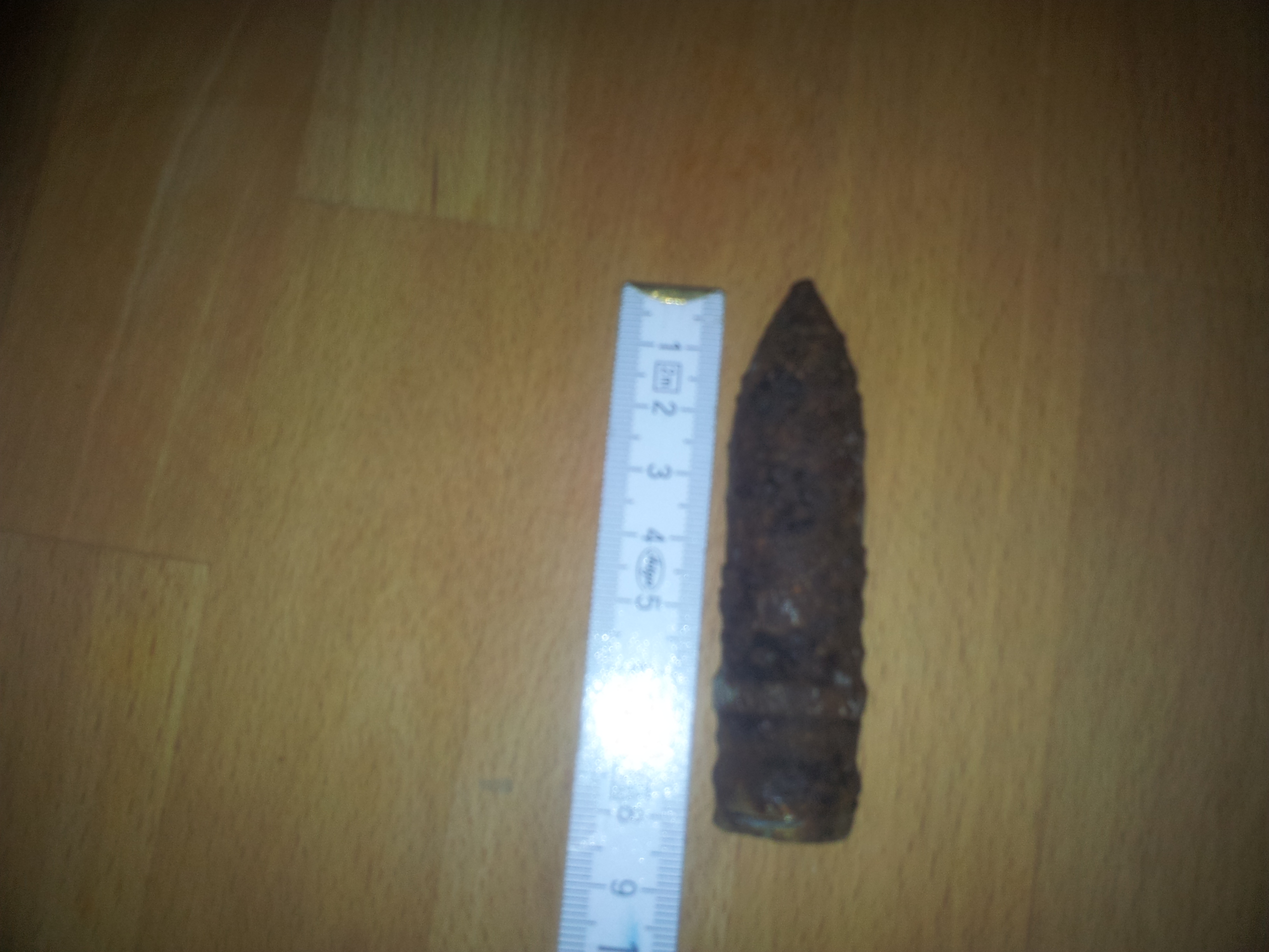 Hallo, hab heute mal in der hinter einem Kinderspielplatz gesondelt, hier ist ein Abhang und ich hab mal mein Glück probiert. Dann hab ich dieses seltsame Teil gefunden, erst dachte ich mir das ist Munition, dafür ist aber die Bodenkappe zu komisch, denn 2 Seiten sind nicht rund sondern abgeschnitten als wenn man es aufschrauben könnte mit einem Schraubenschlüssel. Es ist 8cm lang und hat einen 1,8 cm Durchmesser. Vielleicht hat einer von euch ne Ahnung. Sollte es doch sowas wie ein Geschoss sein , mus ich dem Bürgermeister Bescheid geben.