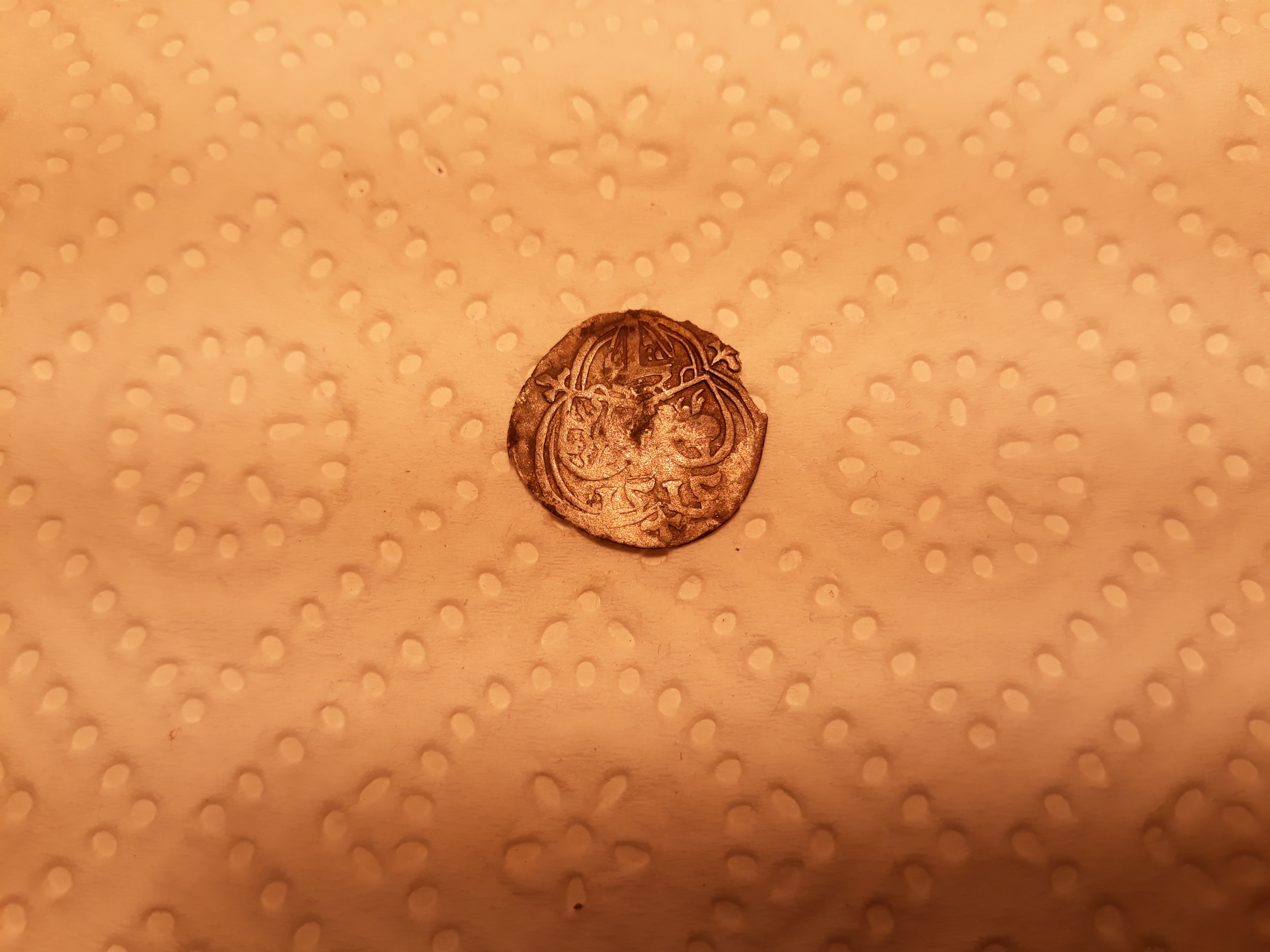 Kann jemand diese Münze aus dem Mittelalter bestimmen? Ich kann 1515 erkennen, drei Wappen (eins mit Löwe, die anderen beiden?) und sie ist nur einseitig geprägt und nicht rund..