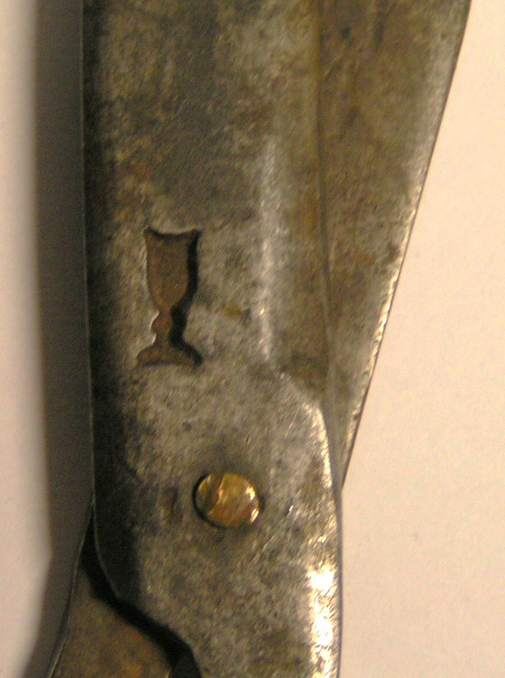 hat links und rechts jeder Scherenhälfte eine Punze eingeschlagen in Form eines Kelches.