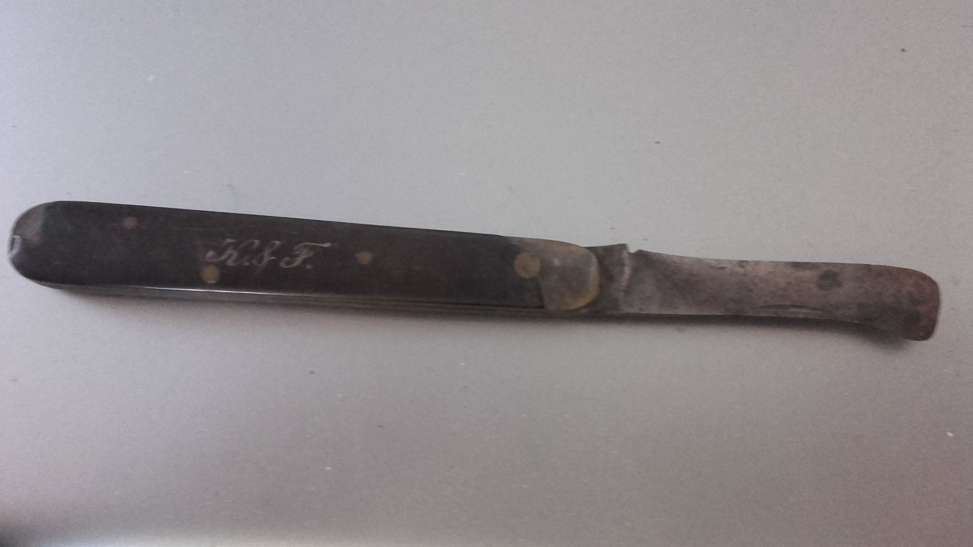 Hier mal meine drei Taschenmesser die noch zu retten waren als sie aus der Erde kamen. Ein Karosserie Kässbohrer ca. 50er jahre. Nen Carl Henkel Messer aus Bielefeld (seit 1871 Ausrüster für die Feuerwehr).