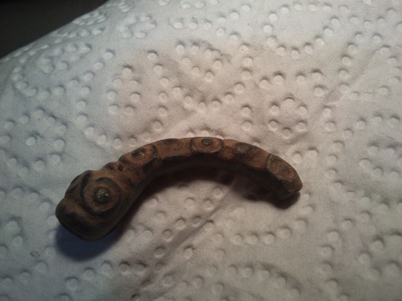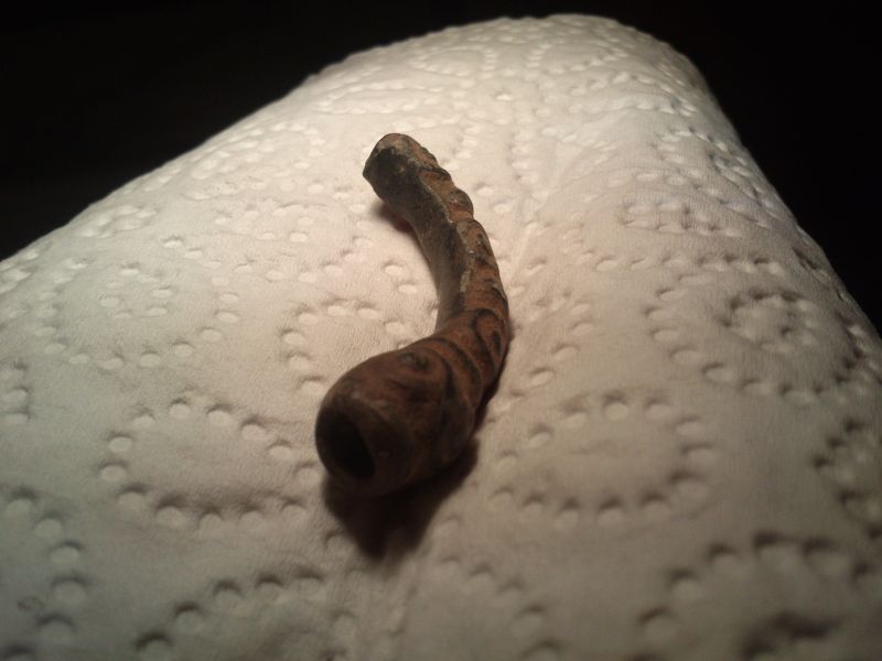 Von der Größe ein viertel Armreif. am einen Ende eine Bruchkannte, am unzerstörten Ende ca 5mm tief hohl gearbeitet.