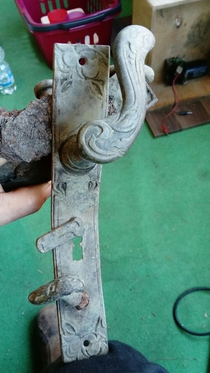 Hallo leute.habe heute diesen Türbeschlag gefunden. die türklinken sind sehr schön verziert sowohl aussen als auch innen.u der beschlag an sich ist auch schön verziert und ist aus Messing(genau wie die klinken)Kann man das alter vielleicht irgendwie zuordnen bzw bestimmen? Danke murzi85