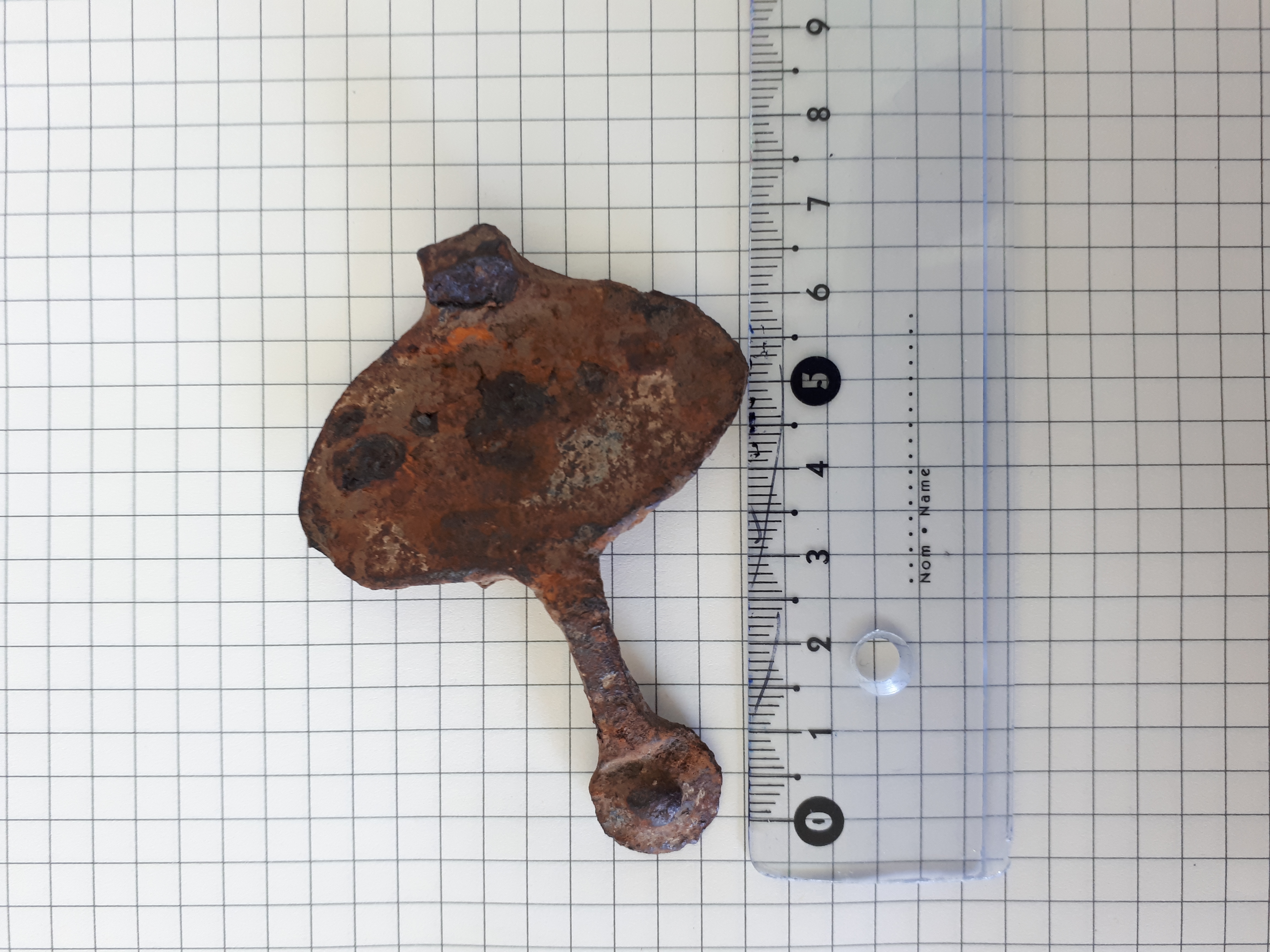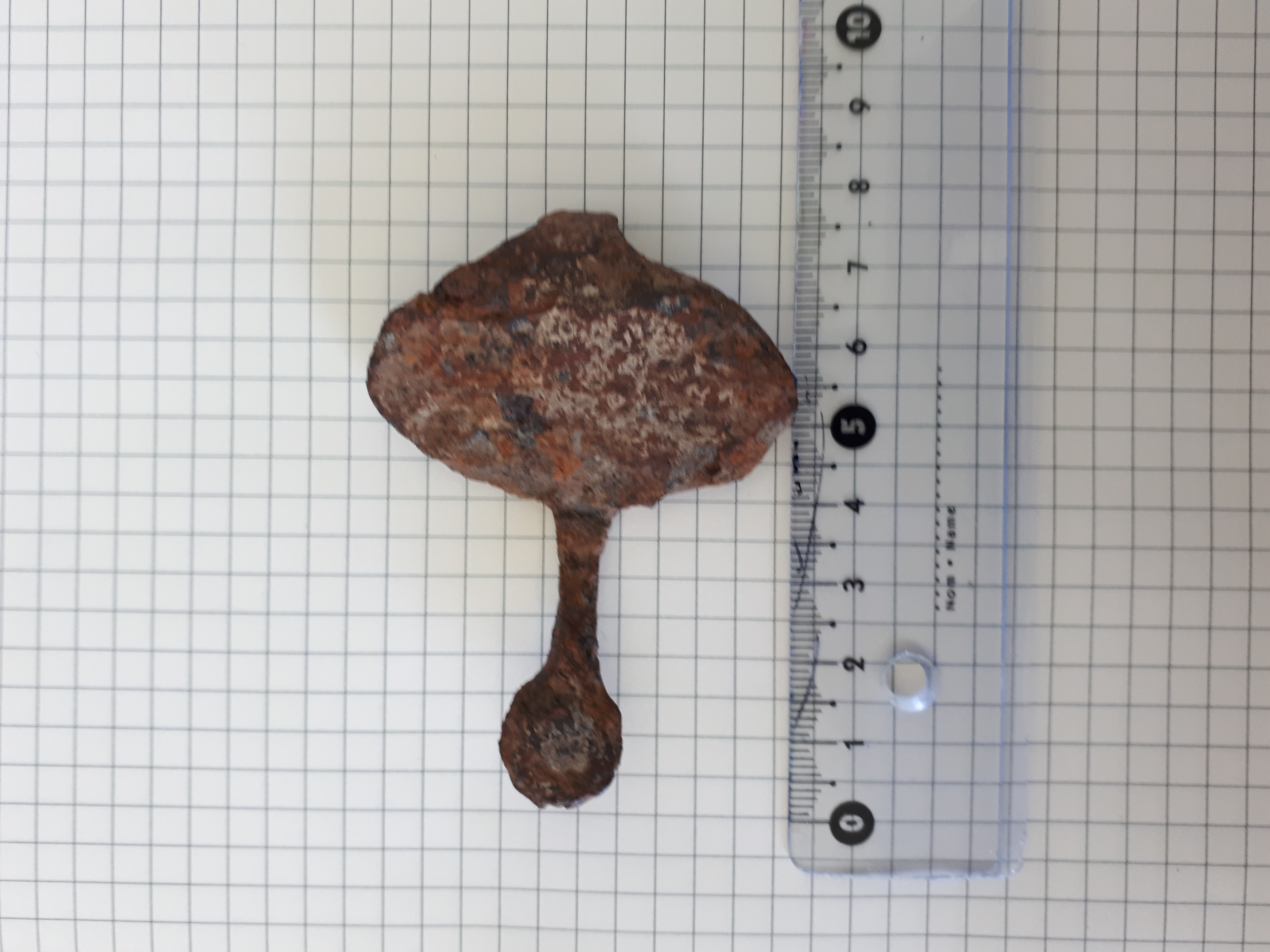 Es ist ein Türbeschlag. (Türband/Ladenband) Besser gesagt war. Ist ja nicht mehr viel dran.