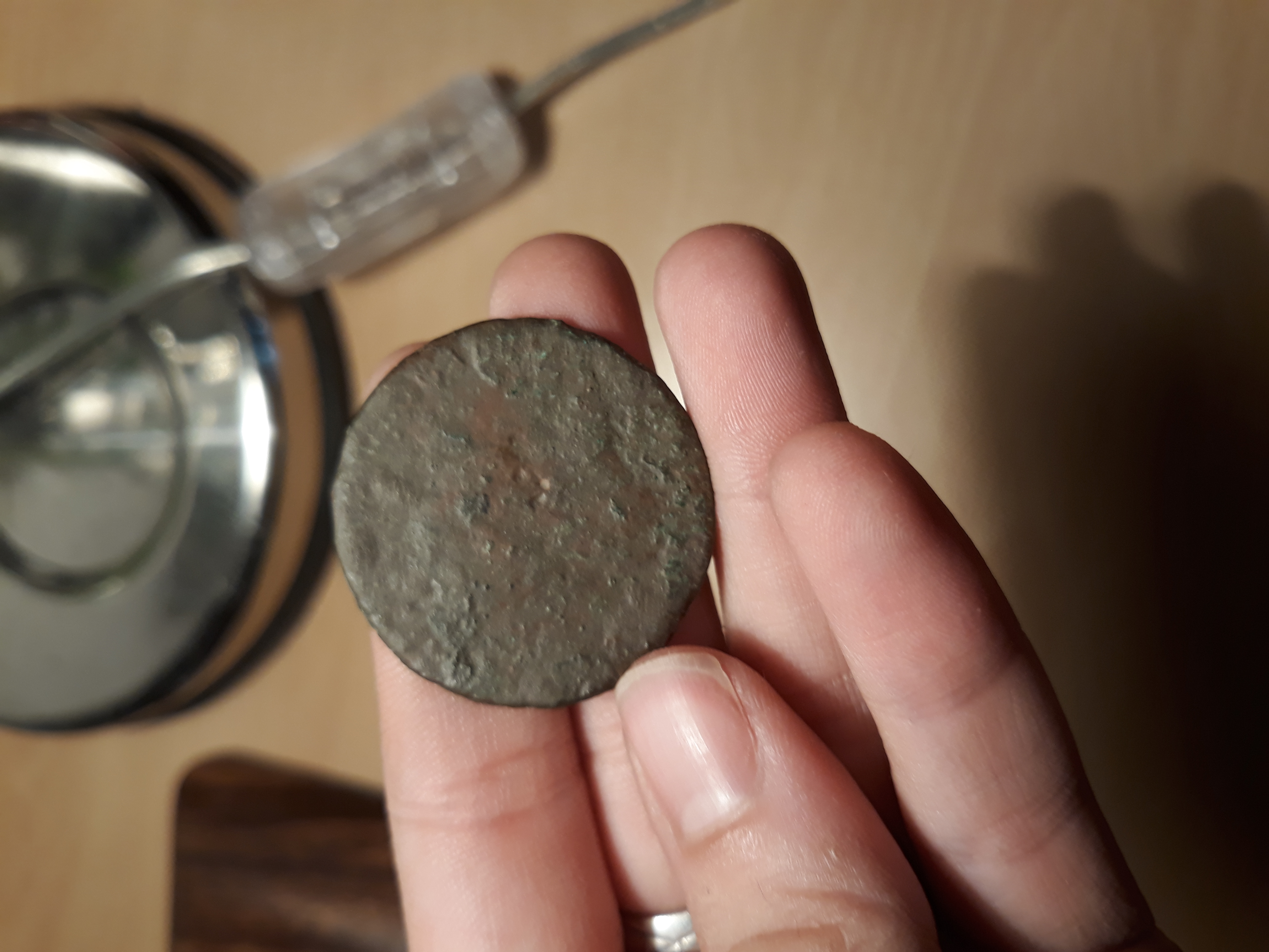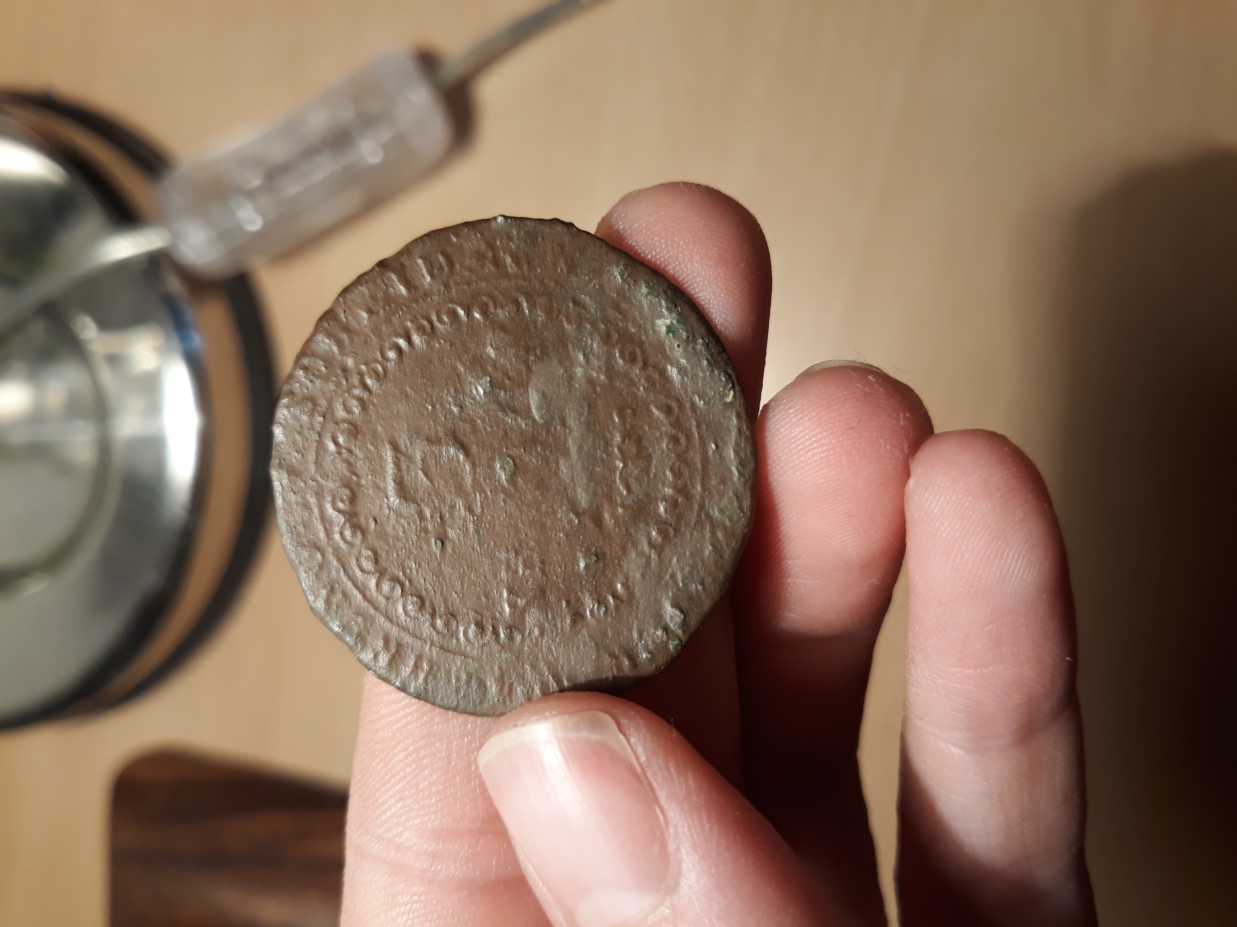 Jemand eine Ahnung was das für eine riesige Münze auf Bild 2 und 3 sein könnte? Durchmesser ist ca 6 cm. Ich meine man kann eine 3 lesen und etwas mit Währung obendrüber. Die Rückseite ist sehr stark patiniert. Denke wenn man sie nass reinigt wird auch nicht mehr zu lesen sein.