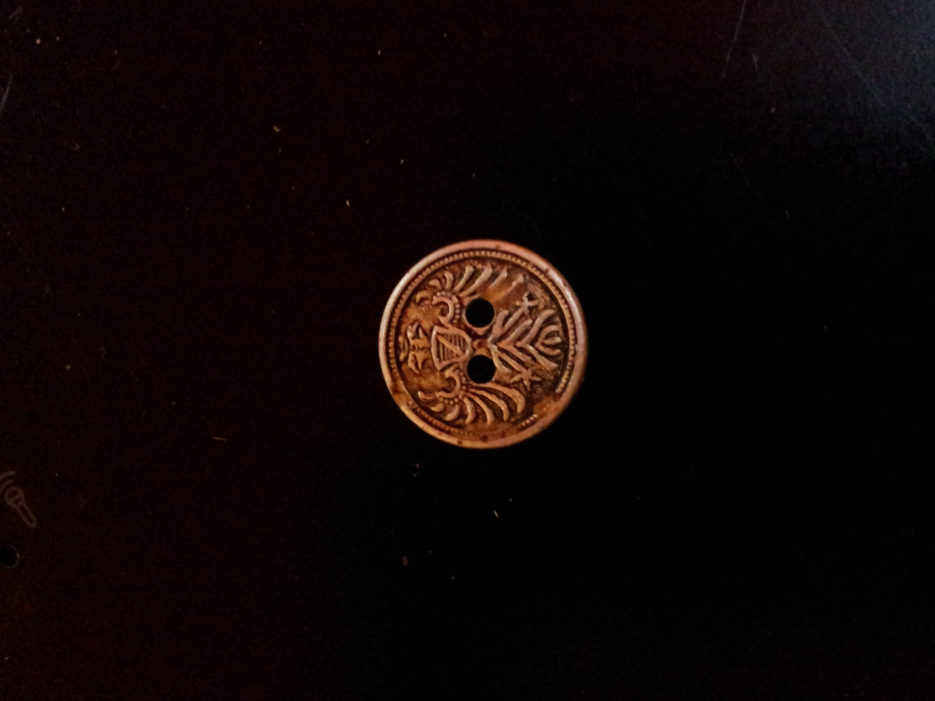 Ja, das ist nicht so einfach, da der Adler in fast jedem Stadt, Land und Gemeindewappen vorkommt. Doppelkopfadler ohne Besteck, könnte ein Reichsadler sein ( Deutschorden) aber mit dem Brustwappen komm ich nicht klar . Sieht aus wie das Wappen von Baden, nur spiegelverkehrt. Da es sich um einen Knopf handelt, vielleicht von einer neuzeitlichen Tracht, könnte es sich auch um ein Phantasiewappen handeln.