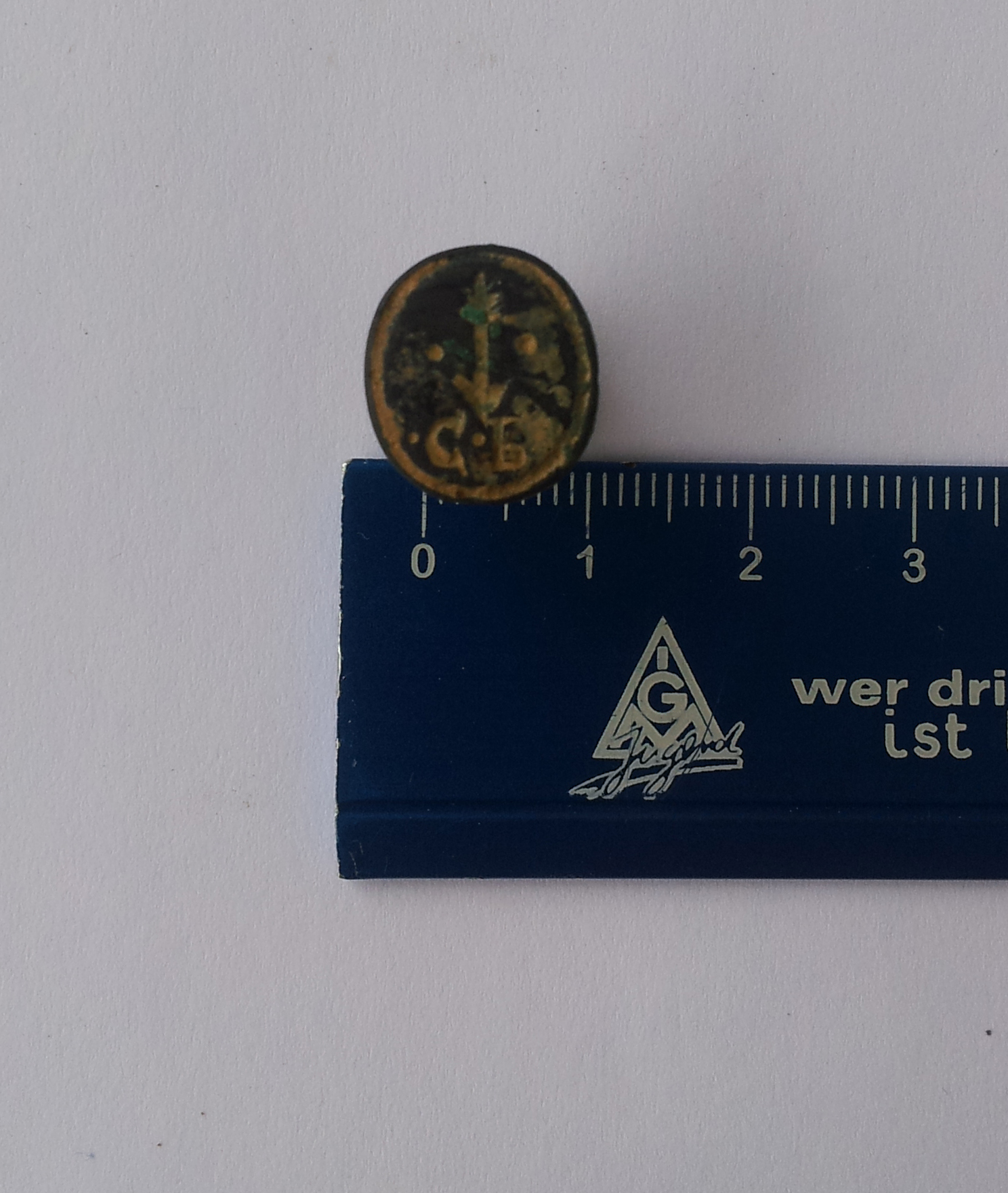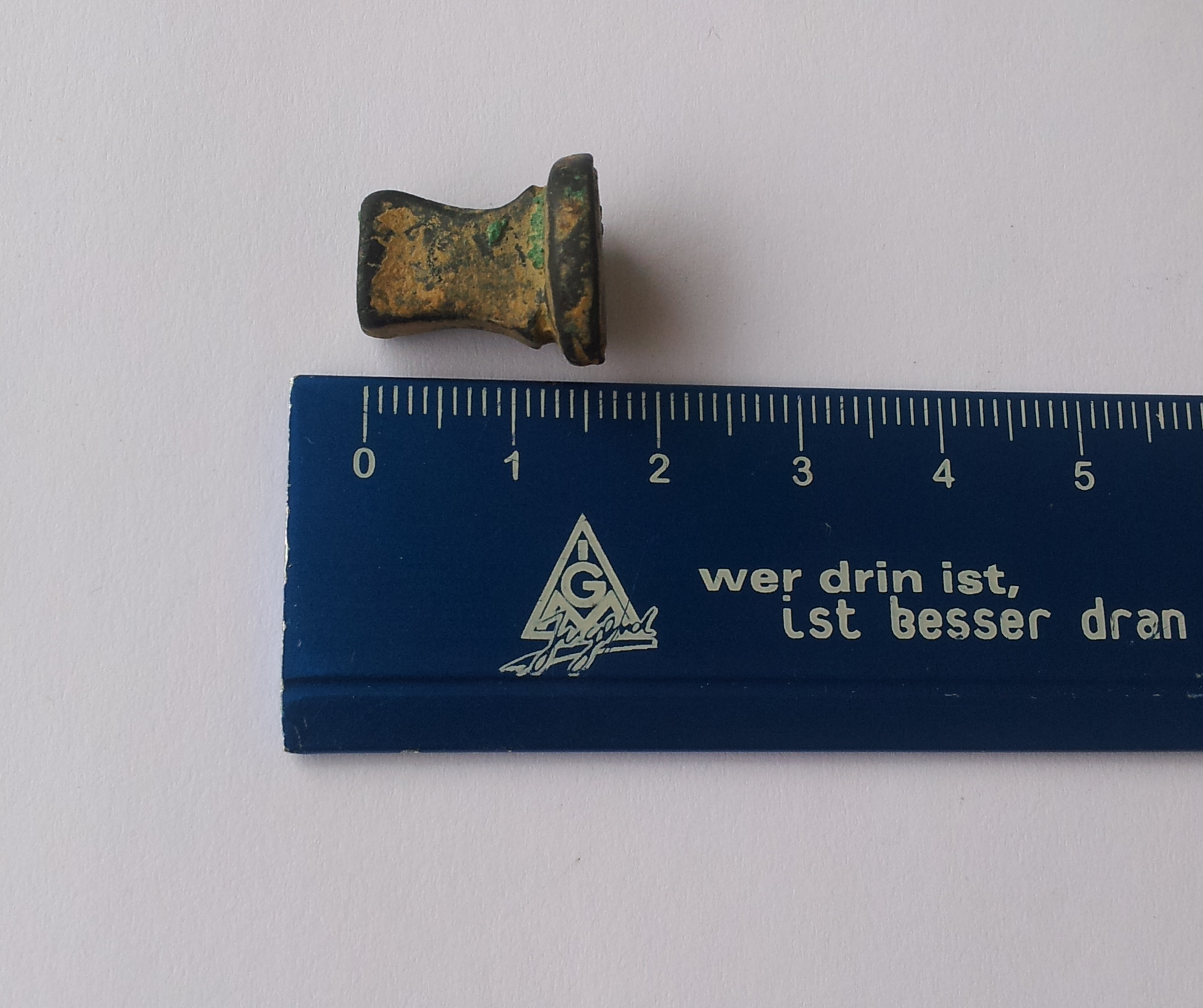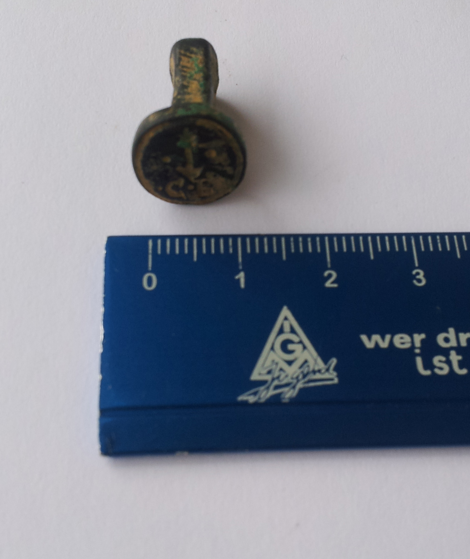 heute kam mir dieser schöne Petschaft unter die Sonde. Länge 1,5 cm, Breite des Petschaftkopfes 1,1 cm, Höhe des Petschaftkopfes 1,3cm.