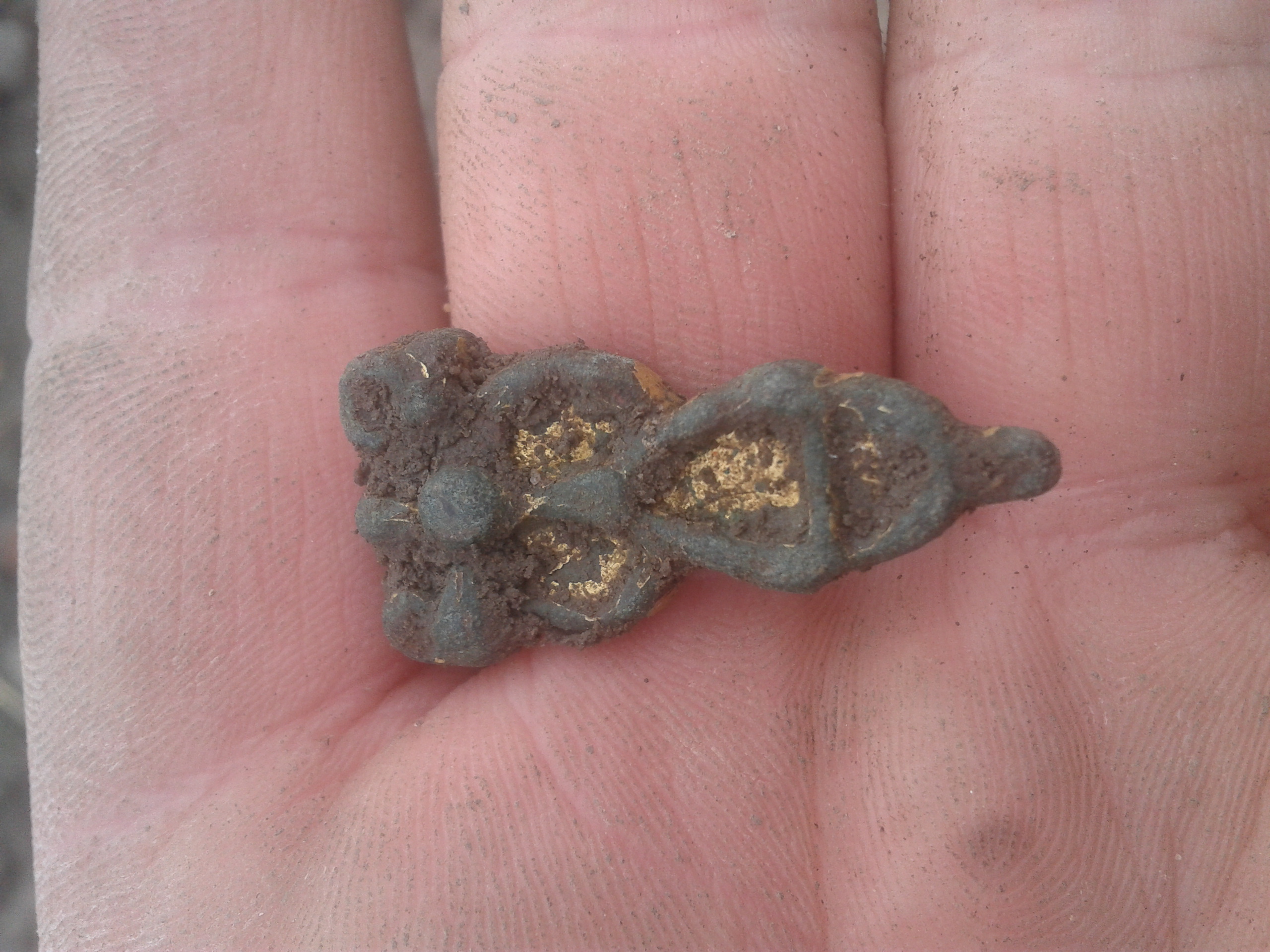 das letzte Bild könnte eine feuervergoldete Riemenzunge sein, aber nur wenn eine Befestigungmöglichkeit vorhanden ist. Bild von Rückseite und Größenangaben wären gut.