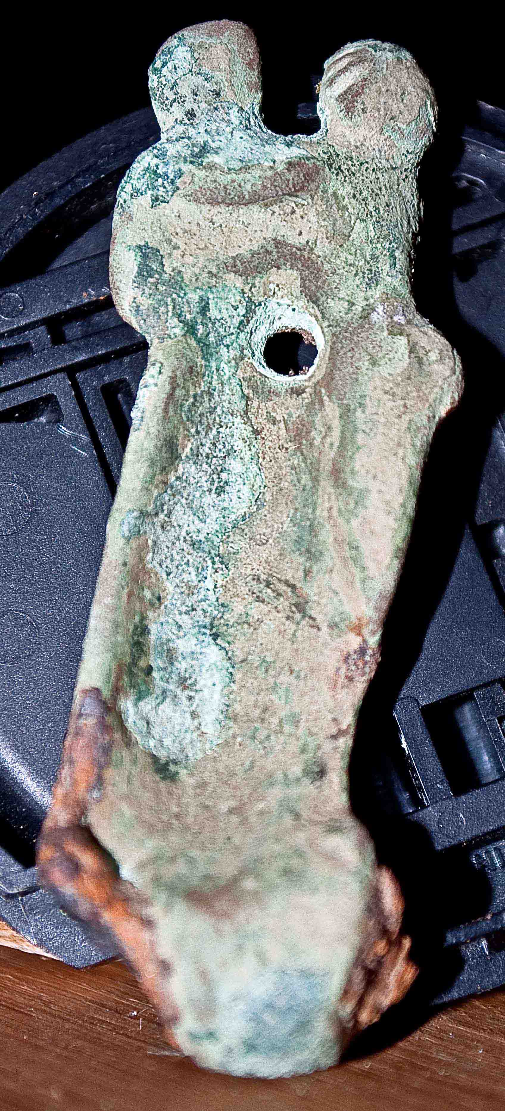 Es ist eine kleine Figur , ich vermute mal aus Bronze, wegen der Grünen Patina und dem Gewicht!?