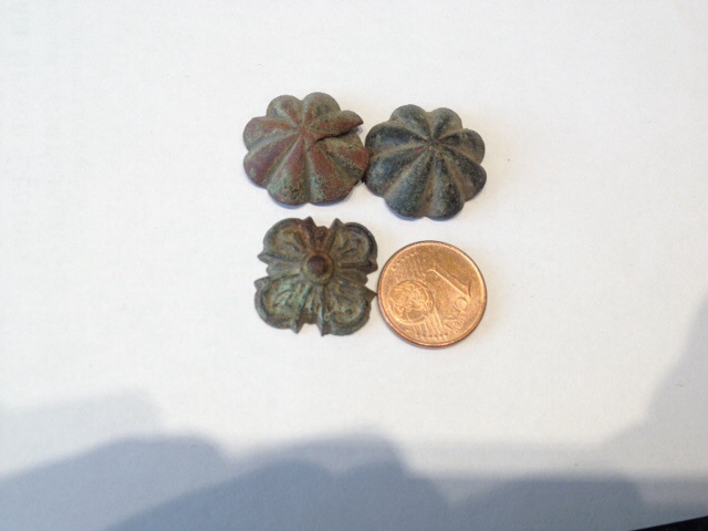 In der Mitte hinten drin könnte die Öse ( welche aus Eisen war) gewesen sein, aber das Loch für die Öse ist doch etwas zu klein?
