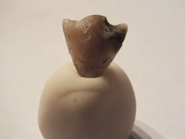 Neolithikum Pfeilspitze (Blattspitze) aus Silikatgestein(Silex) mit abgebrochener Schaftzunge und wiederhaken grösse cirka 1x1cm also sehr klein fein retuschiert,wie ich finde sehr feine Handwerkskunst es ist eine meiner schönsten Pfeilspitze gefunden in 2003 und gemeldet.gruss df