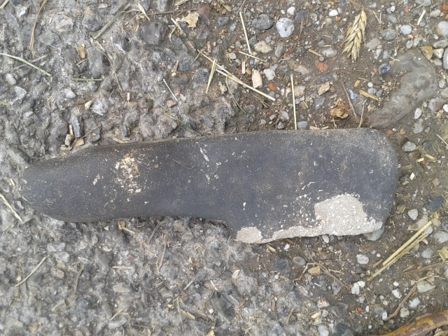 Ist es gelocht?wie gross?Besseres Foto vieleicht?Tippe auf einen Sensenstein,Wetzstein,oder ähnliches habe auch schon mehrere gefunden sind aber meistens kaputt.
