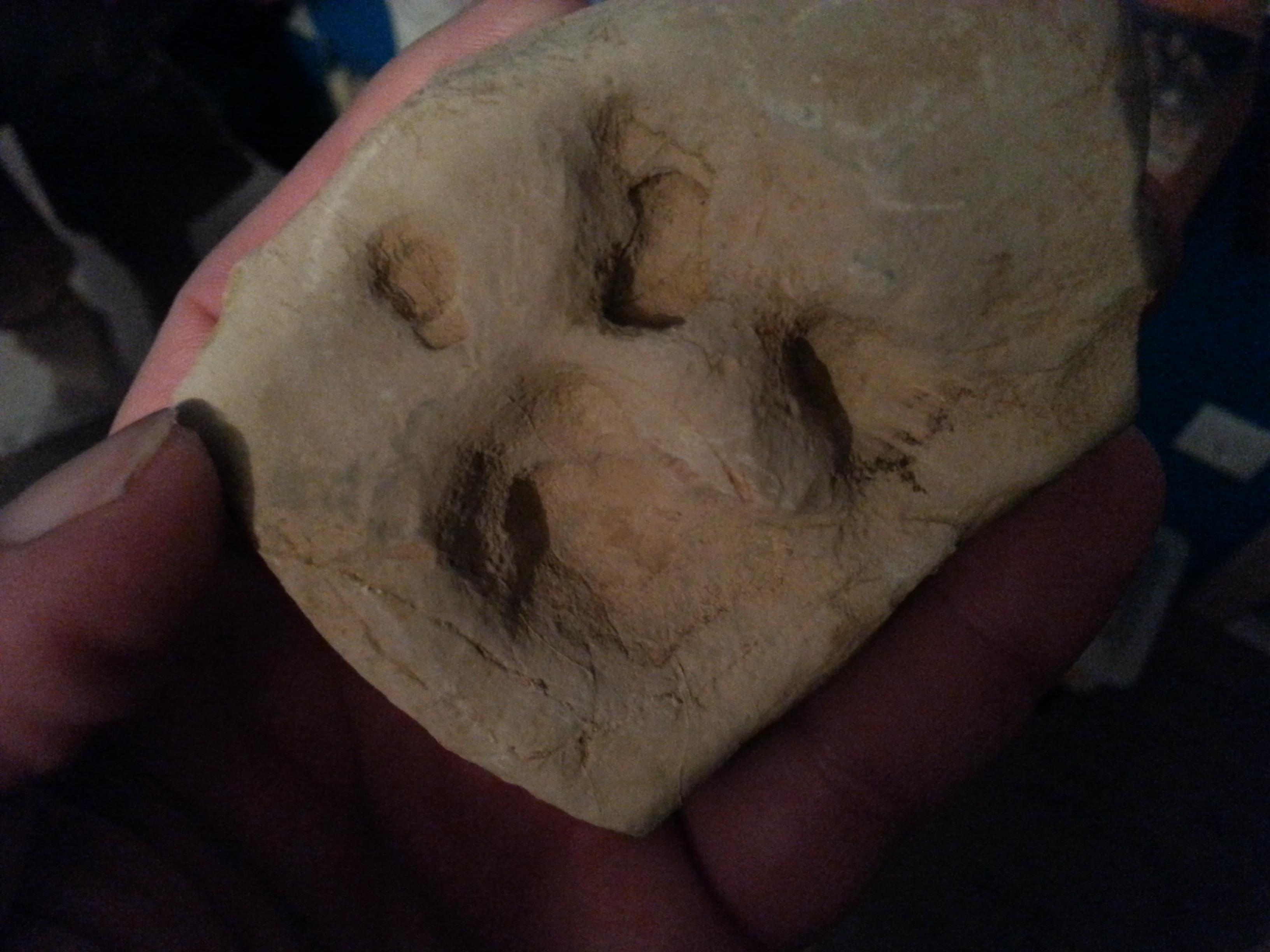 bin beim Graben auf diesen Stein gestoßen. Sieht aus wie ein Fußabdruck. Was meint Ihr?