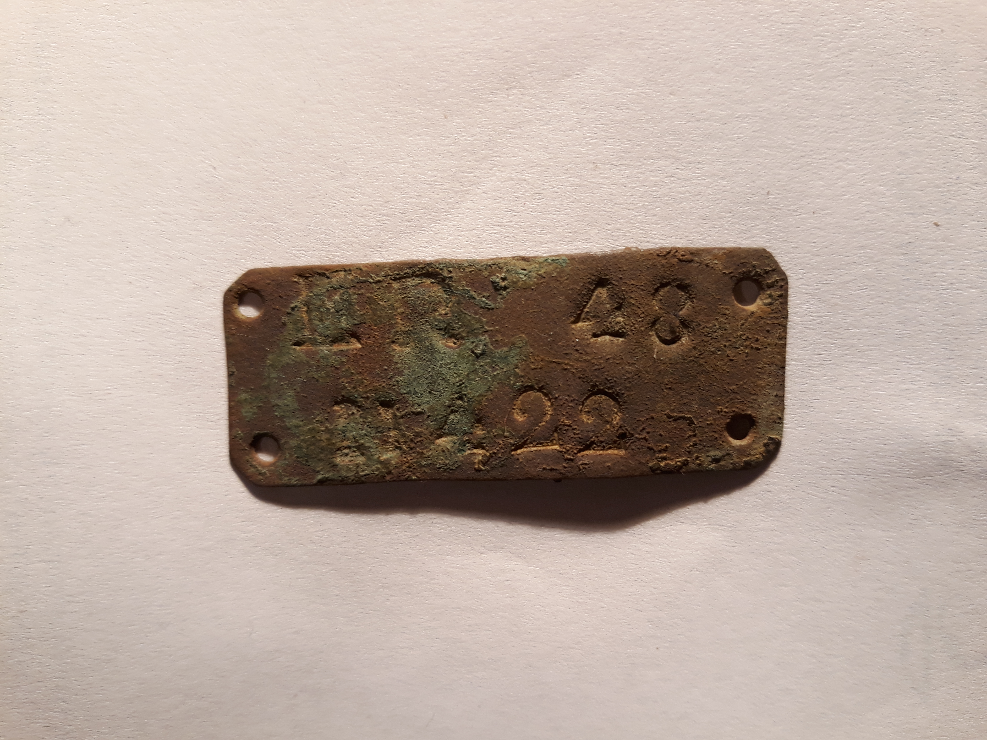 Ich tippe auf Typenschild von einem Geraet / Maschine unten das koennte die Stueck oder Produktionsnummer sein