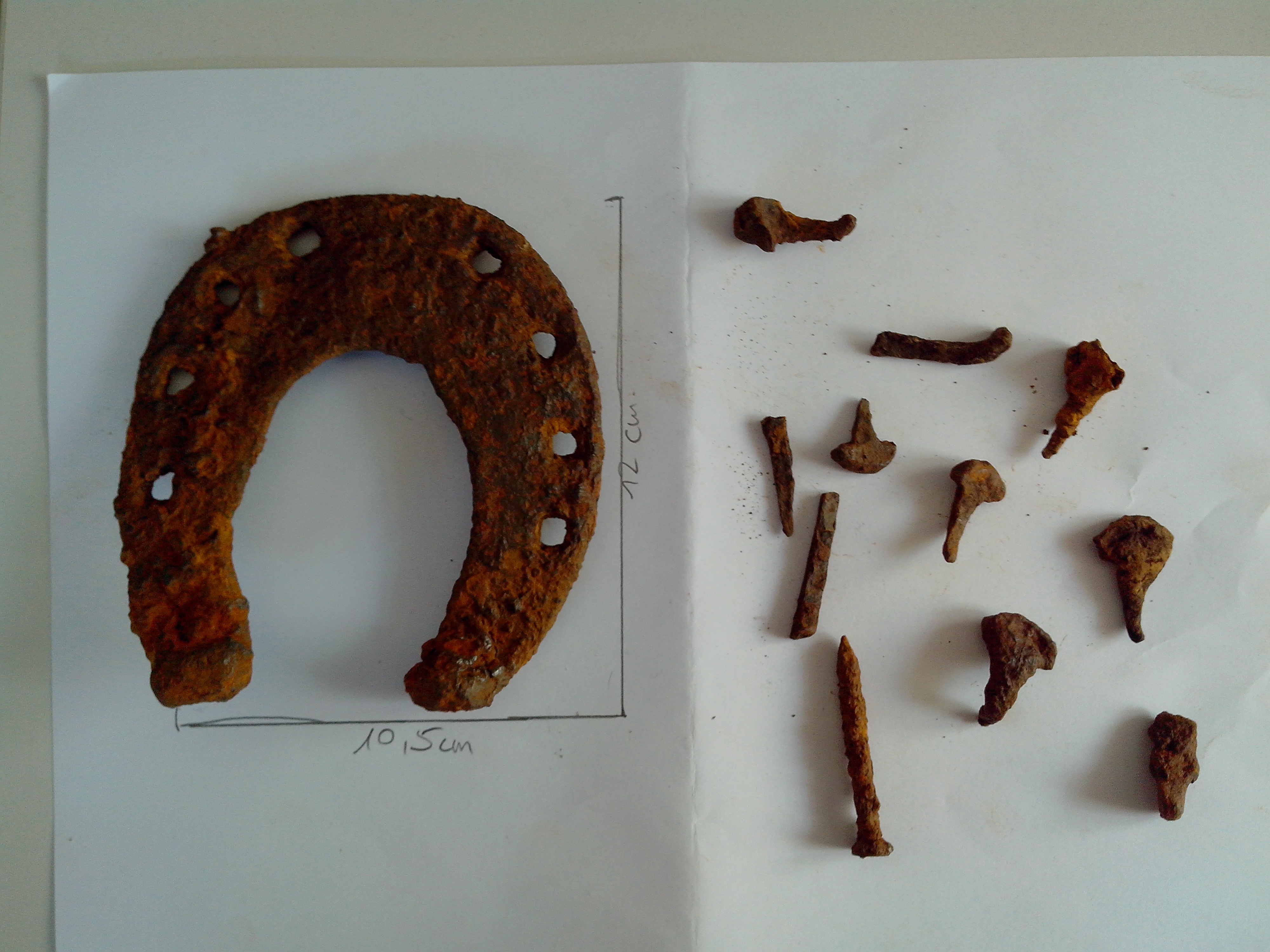 Das Hufeisen lag nicht bei den Nägeln sondern Luftlinie vielleicht 200 Meter entfernt.