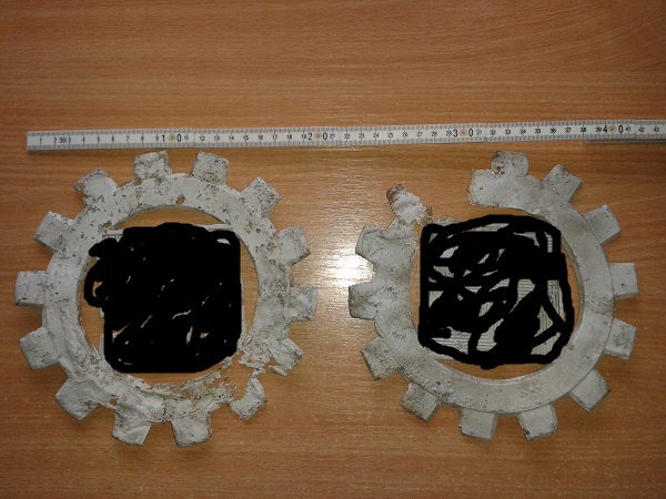 wenn die Dreckkruste weich geworden ist, unter Aufbringung von etwas Wasser und Kaisernatron vorsichtig zw. den Finger und Daumen abreiben.