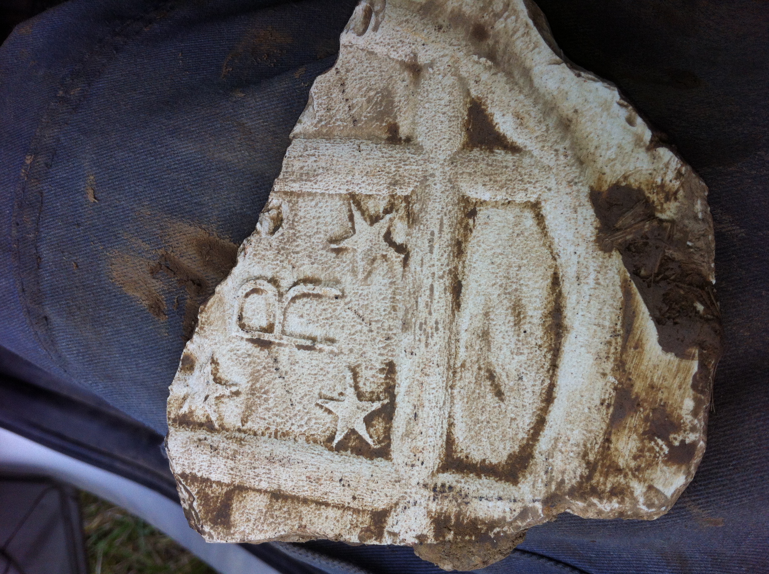 Anbei mal ein Bild einer schön Verzierten Tonscherbe, vermutlich eine Alte Dachpfanne oder Türrahmenverzierung.