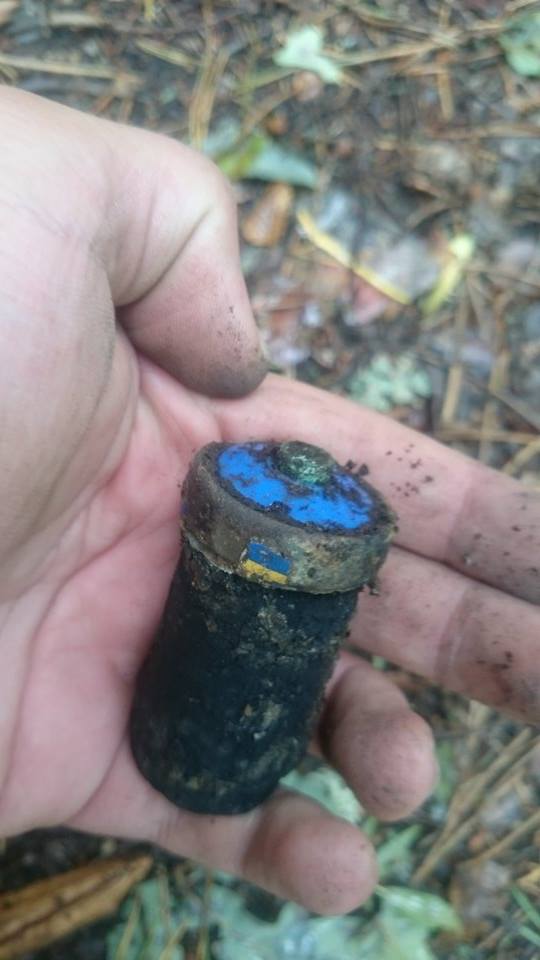 ist für mich ne normale Batterie(Baby C oder Mono D) wo der Mantel sich mit der Zeit im Boden verabschiedet hat. Würd auf Varta tippen.