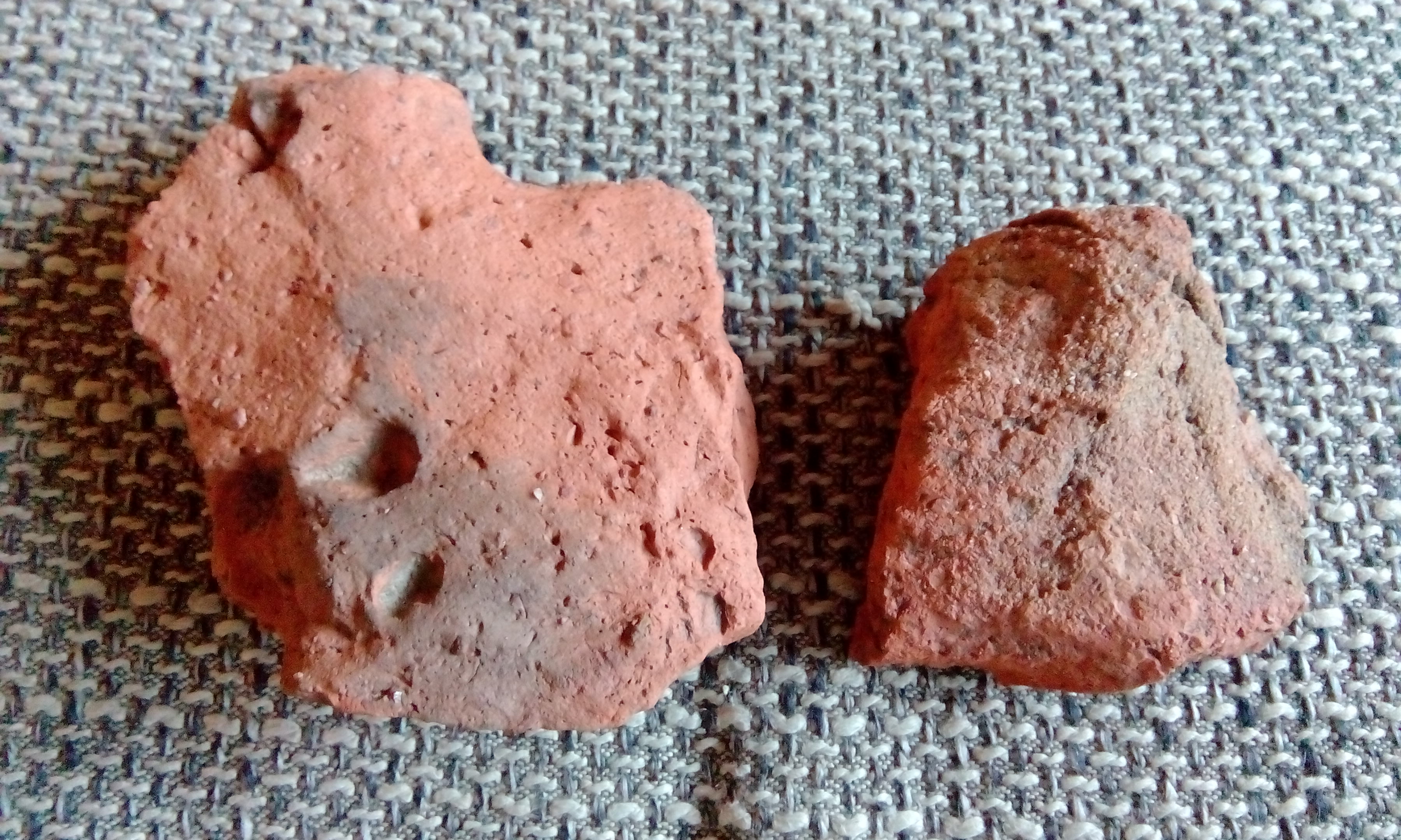 Durch Feuer vernichtet, ist dieser Rotlehm im Boden sehr haltbar, wird er jedoch