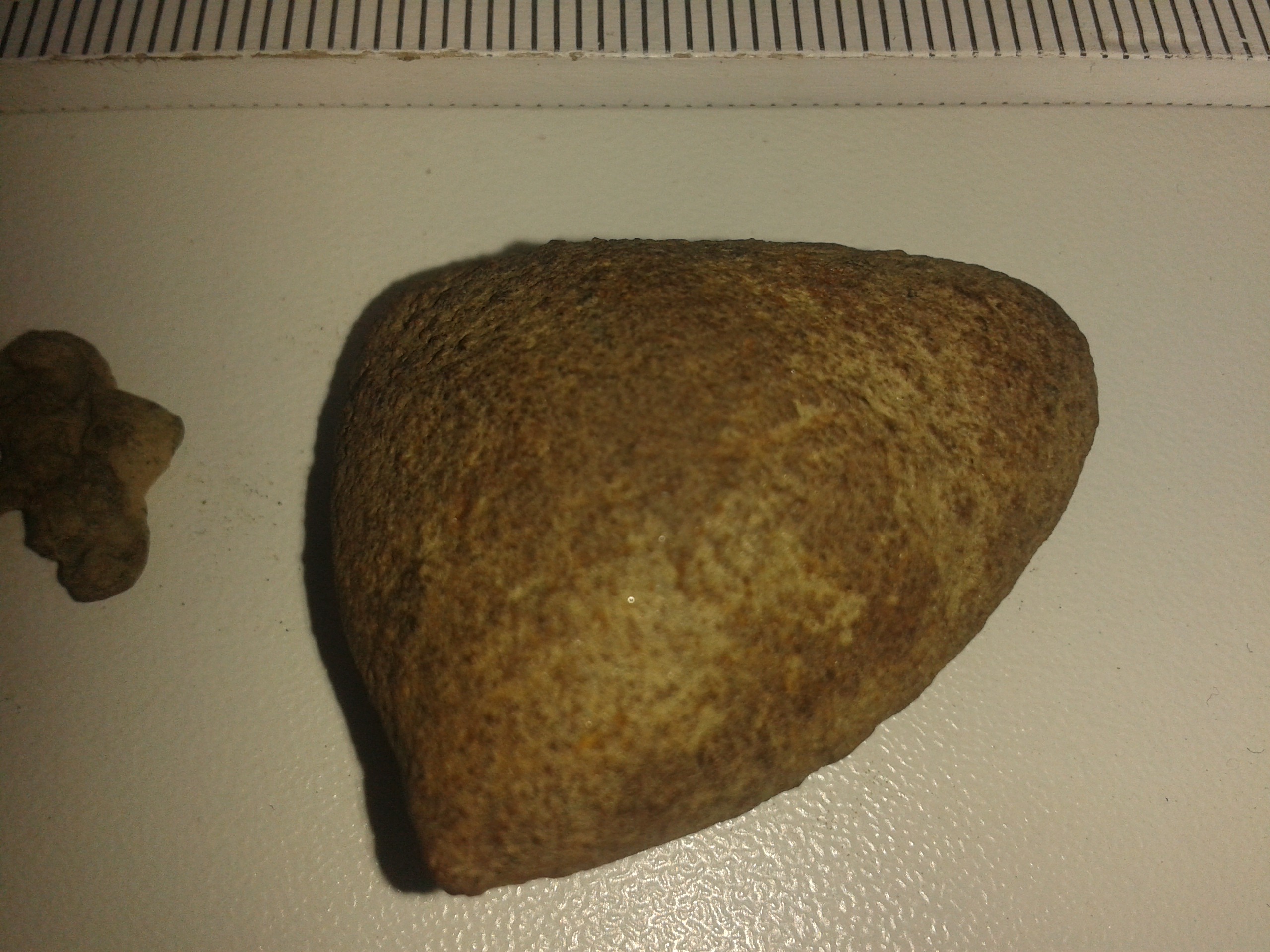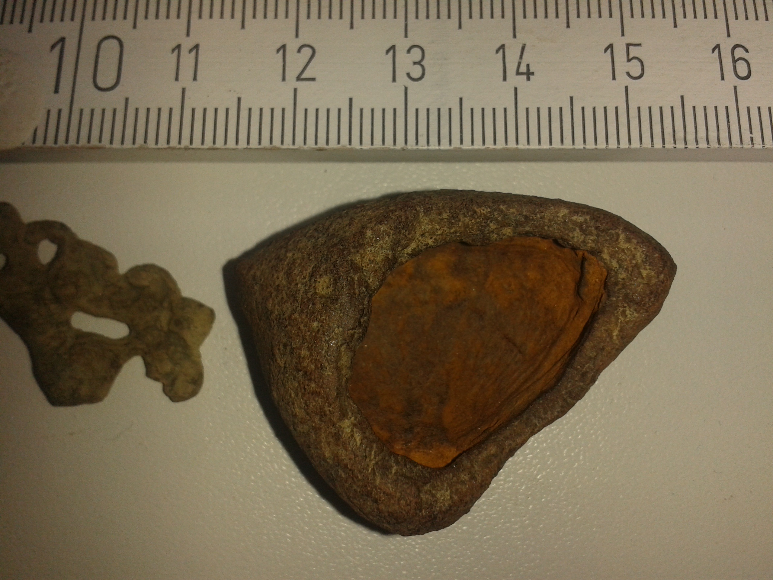 Der "Stein" eine Eisenablagerung. Wenn Du genau hinsiehst, wirst Du verschiedene Schichten erkennen. So was hab ich auch schon gefunden, allerdings war ich da noch nicht im Sondelfieber. :lol: