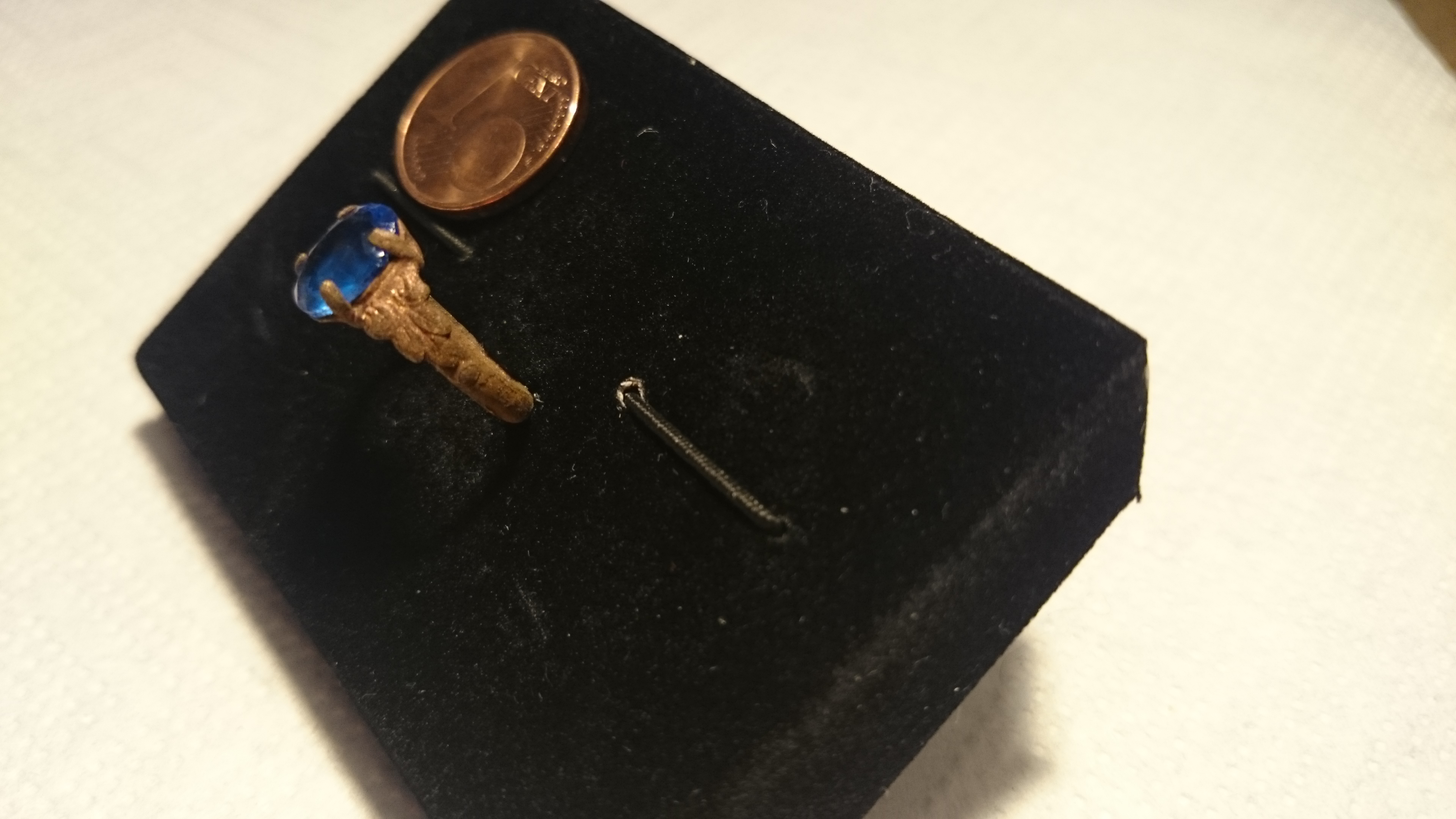 Die Einfassung des "Steins" mit diesen vier "Klammern" deutet auf Kinder- o. Automatenring hin. Bei einem schönen Ring mit einigermaßen echtem Stein ist der Stein so eingefasst, dass nicht wirklich sichtbar ist, wie er gehalten wird.