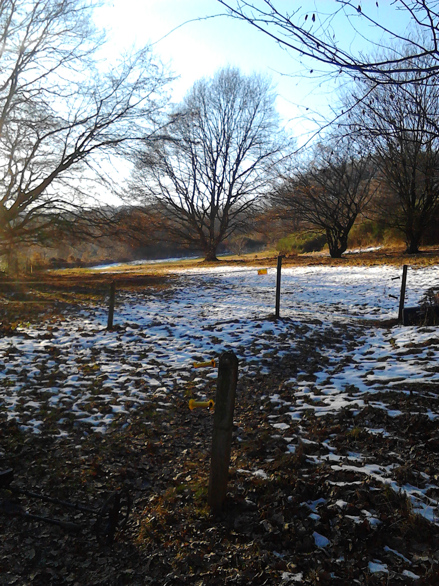 hier darf ich links hinter dem fanenkraut auf einer 2 handballfeld grossen pferdewiese suchen.