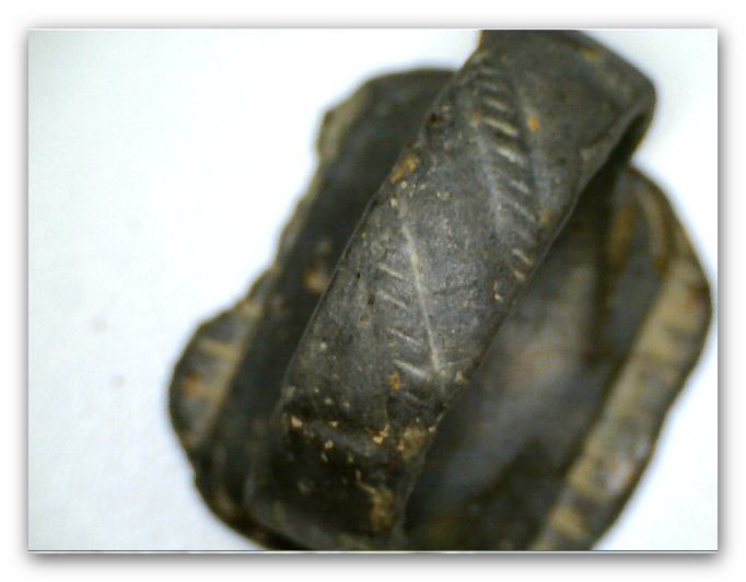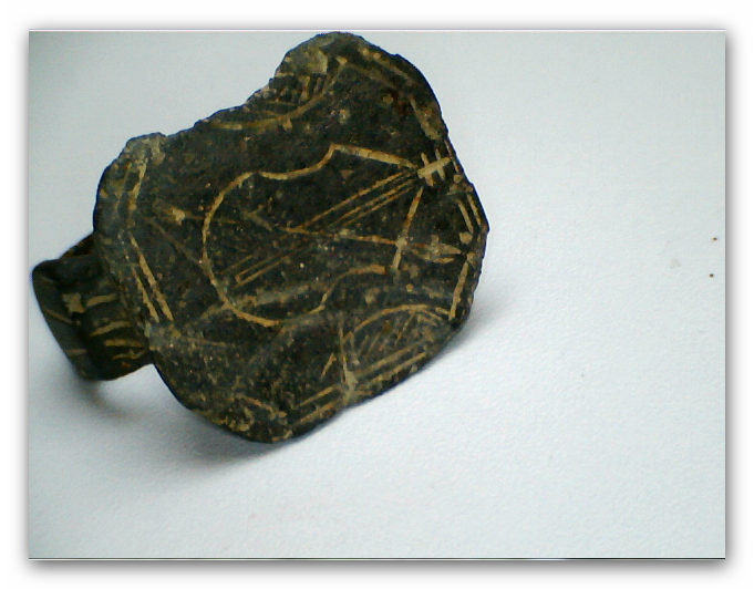 aber möglicherweise zeigt das Siegel eine mittelalterliche Fidel, der spitz zulaufende Korpus (Oberbug) könnte ein Hinweis sein, vielleicht gehörte der Siegelring einst einem Minnesänger ?!
