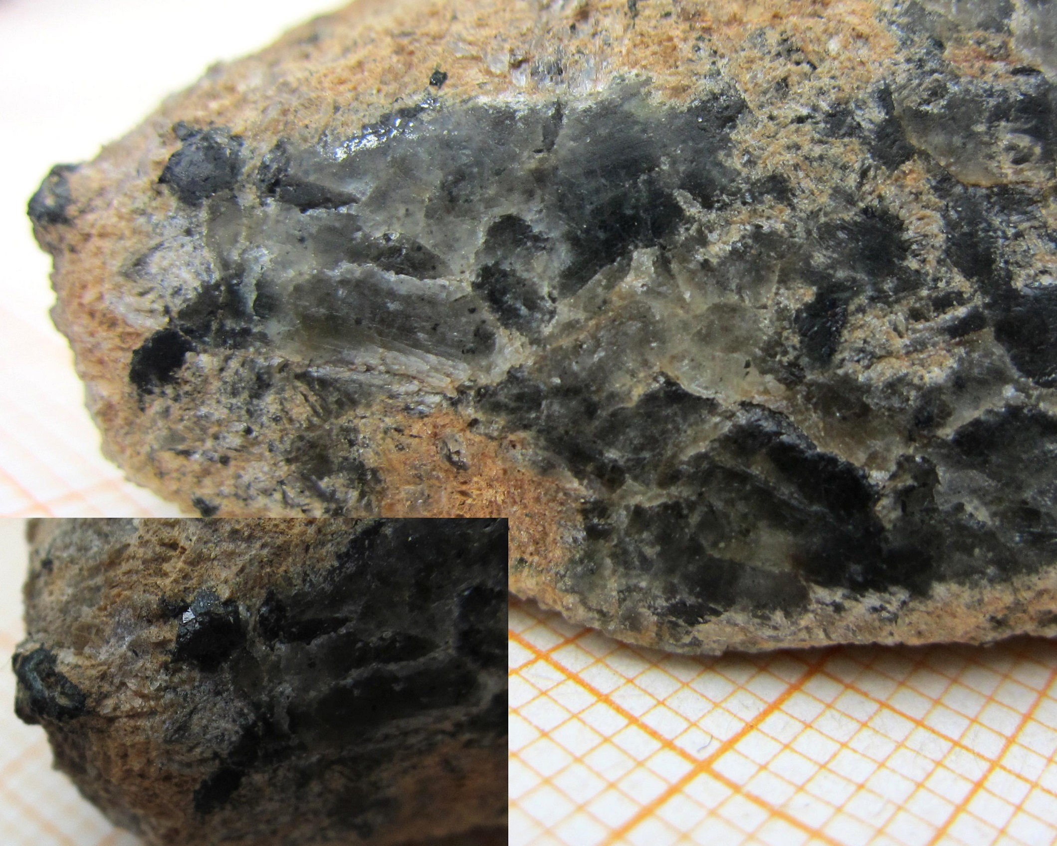 unbestimmte schwarze Kristalle stark metallhaltig u schimmern angeschliffen silbern wie frisches Eisen