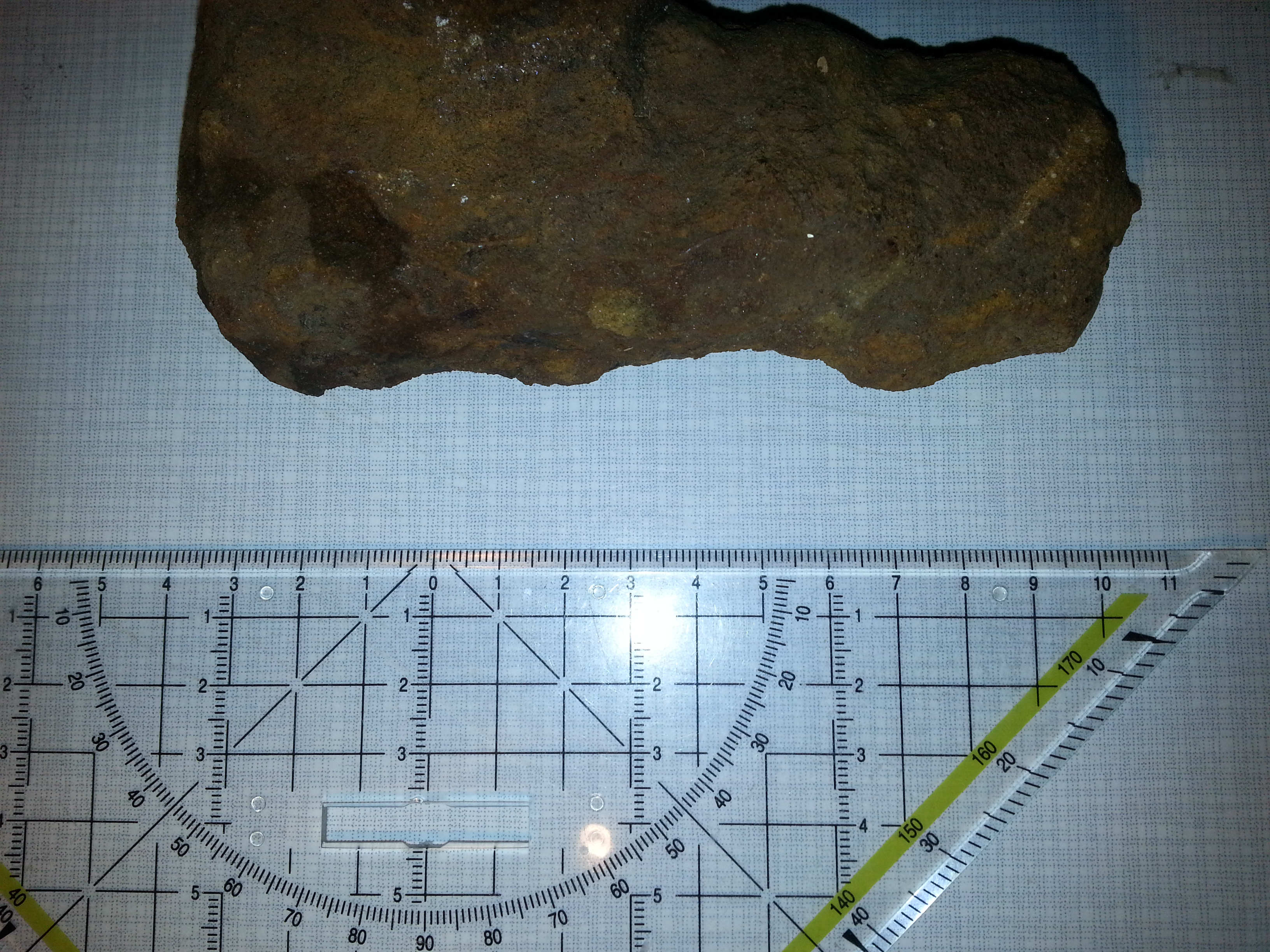 habe diesen Stein vor ein paar Tagen auf dem Acker gefunden . Es ist ca 14 cm lang und wiegt 801 Gramm. Es fühlt sich für die Größe sehr schwer an .