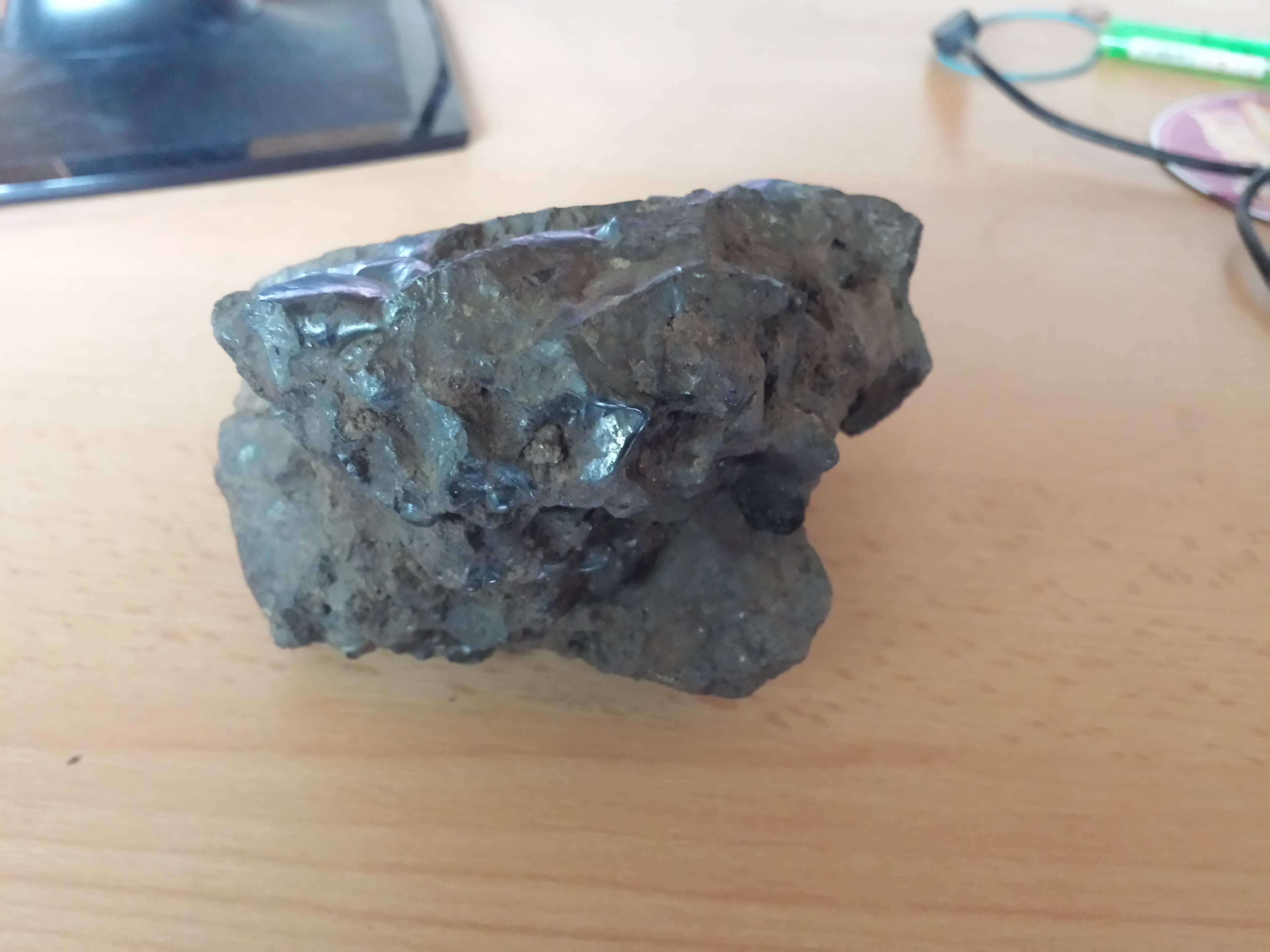 Die Oberfläche ist matt und das Objekt wiegt etwa 1,4KG,11cm Breit, 10cm Tief und 6,5cm hoch. Er ist auch leicht magnetisch. Wurde im Garten gefunden, etwa 15cm tief unter der Erde,