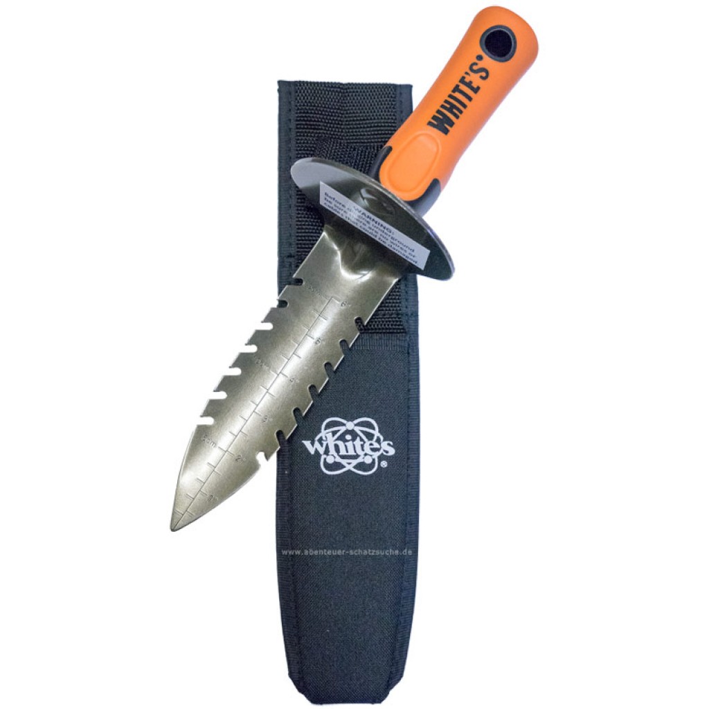 Hat 2 Vorteile gegenüber dem Messer: 1. Die Fundbergung geht aufm Acker genau so schnell wie mit dem Spaten und das Ding kann man sich mit Schlaufe/Karabiner an den Gürtel hängen und 2. ist das Ding aus glasfaserverstärktem Kunststoff. Absolut genial, nix mehr mit Grabungswerkzeug ständig auf Seite legen beim Pinpointen etc und das Ding wiegt zudem keine 100g. Ist für Kunststoff extrem stabil, sollte man natürlich trotzdem nicht mit versuchen in steinharte Böden zu stechen