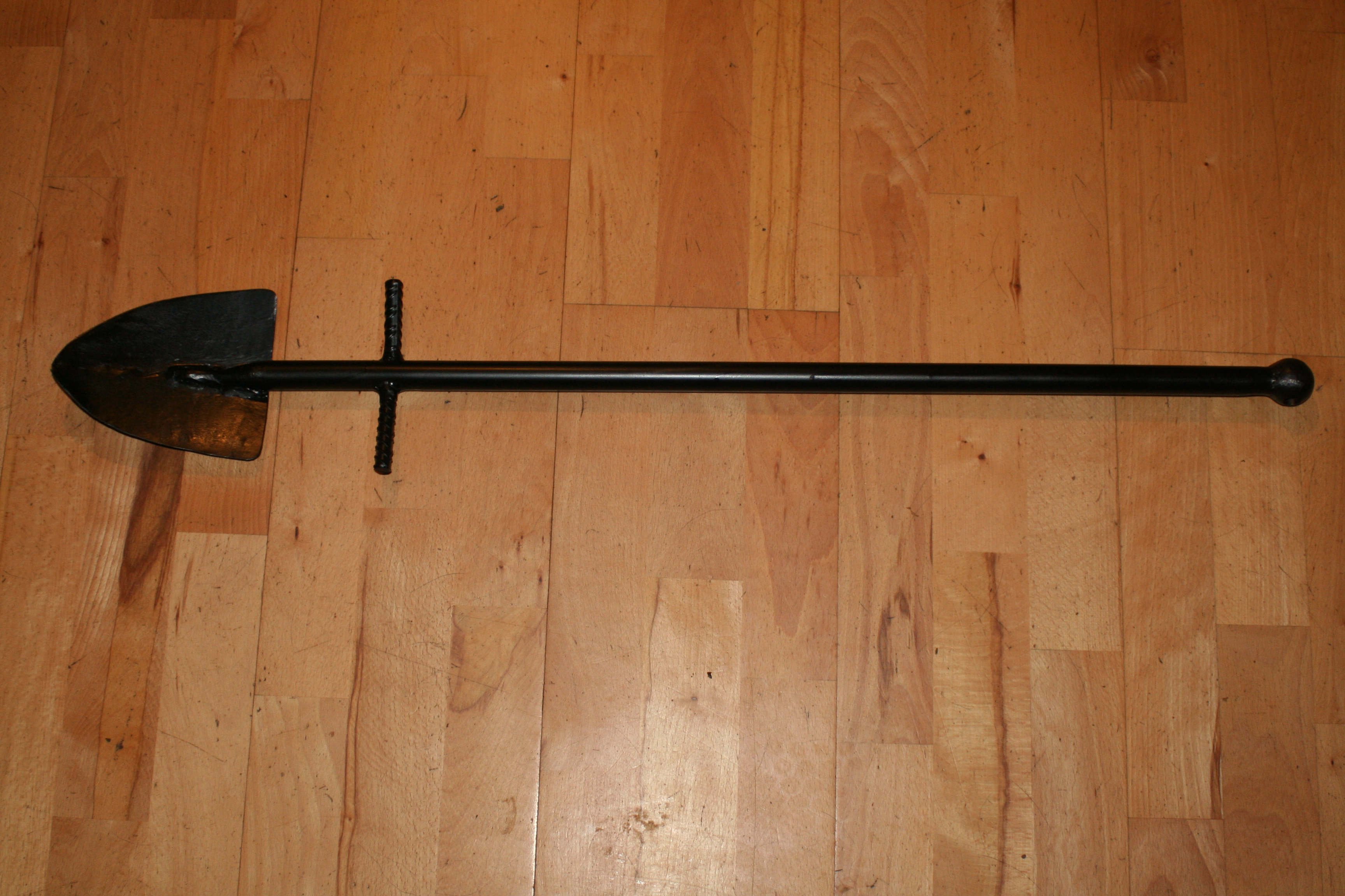 Am Stielende ist eine Kugel mit einem Durchmesser von 3,7cm. Das Blatt läuft schön spitz zu und ist angeschärft.