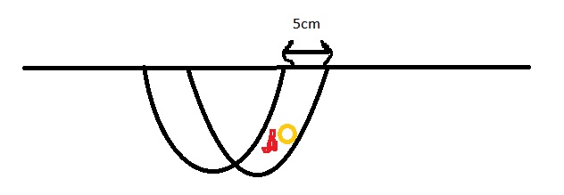 Man bekommt garantiert das Eisensignal und wird denken, das ist ein Klumpen Schrott. Rein theoretisch müsste man unendlich kleine Schritte machen um das zu vermeiden. Den Detektor so zu schwenken, dass nicht beide im Suchradius sind erfordert schon akrobatische und fast hellseherische Fähigkeiten, da der Suchbereich nicht wirklich kegelförmig ist, sondern eher wie eine x^2 Graph (siehe Bild), das heisst, die Flanken aussen gehen zunächst eher steil nach unten, anstatt schräg zur mitte zu verlaufen (wie bei einem Kegel). Und vor allem, wer läuft bitte mit 5 cm Vorwärtsschritten? Hier ist es höchstwahrscheinlich so, dass bei der nächsten 2cm Vorwärtsbewegung beide Objekte im Suchradius sind und nicht, wie gewünscht, einer der beiden.