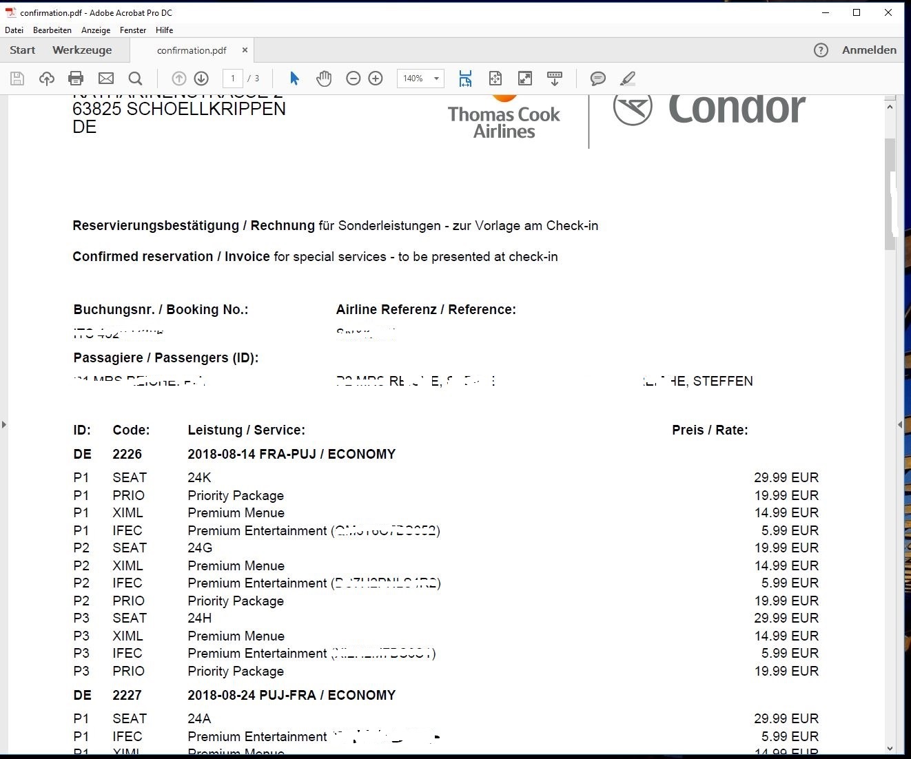 Keine Ahnung wo deine Probleme sind. Es ist bekannt das du bei Condor vorab viele extra buchen kannst.