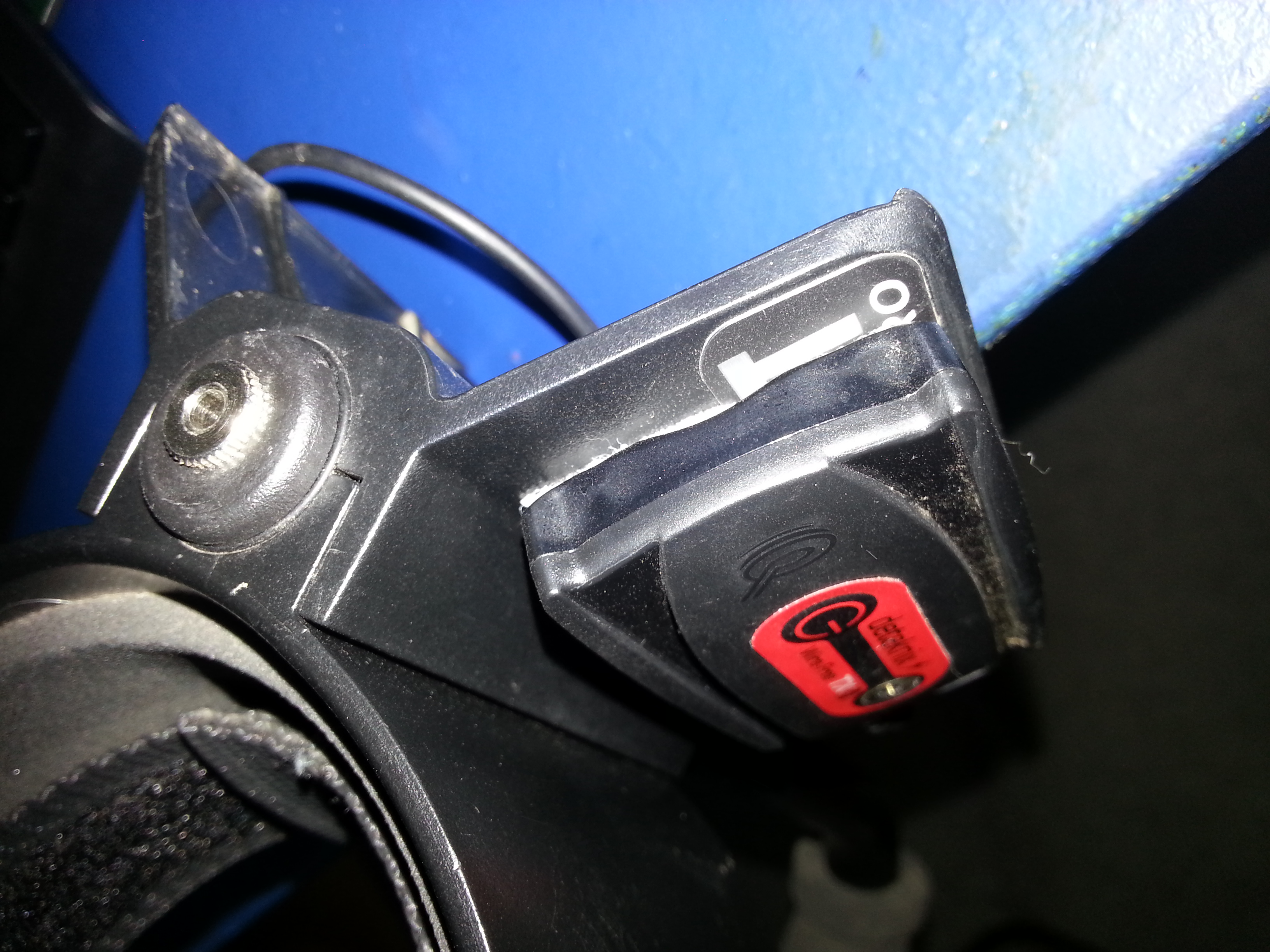 Den Sender mit Klett unter die Armstütze befestigt.