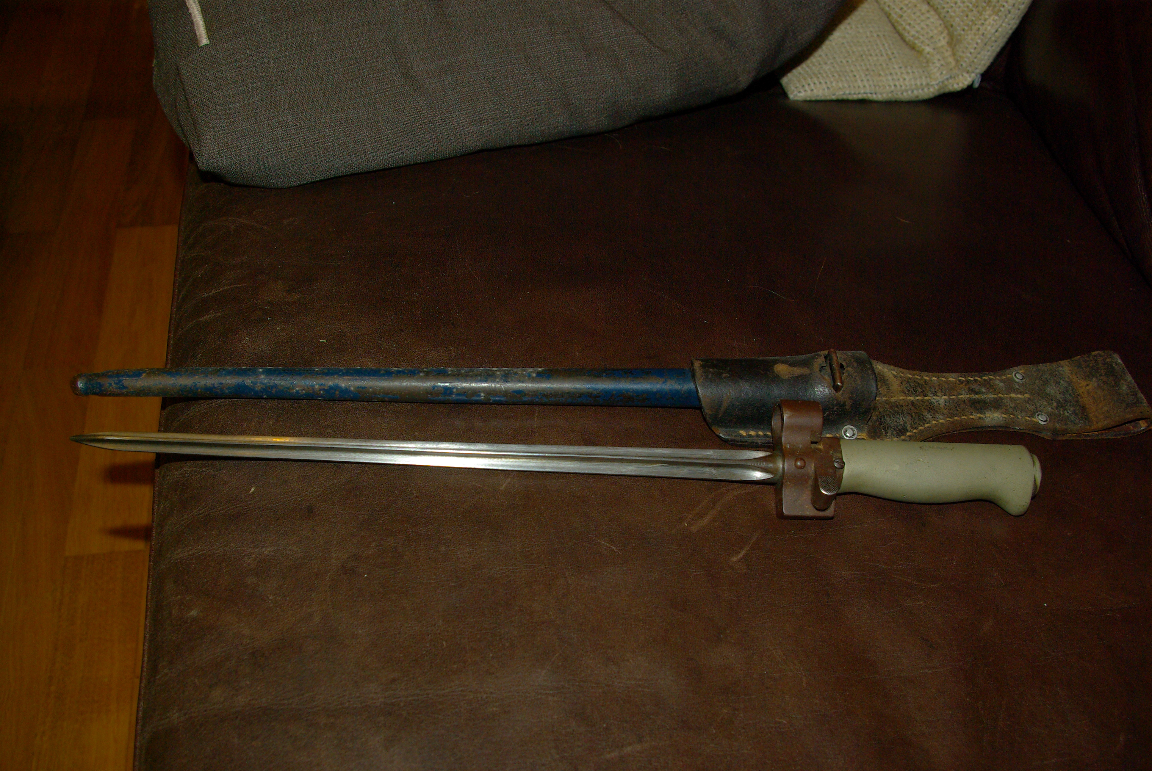genau , ein Lebel Mle1886/15 denke ich wenn die Klinge ca. 40 cm lang ist , bei 35 cm müsste es sich dann um ein SG103(f) handeln , also ein gekürztes Beutestück dann deutsch getragen