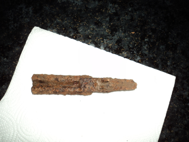 Nun bin ich mir fast sicher das das Fundstück Reste einer doppelläufigen Pistole sind. Ich habe die Fundstelle im umkreis abgesucht, aber außer Hülsen neuerer Bauart (vermtl. Jäger) nichts weiter gefunden Der Fund wurde nur grob gereinigt.