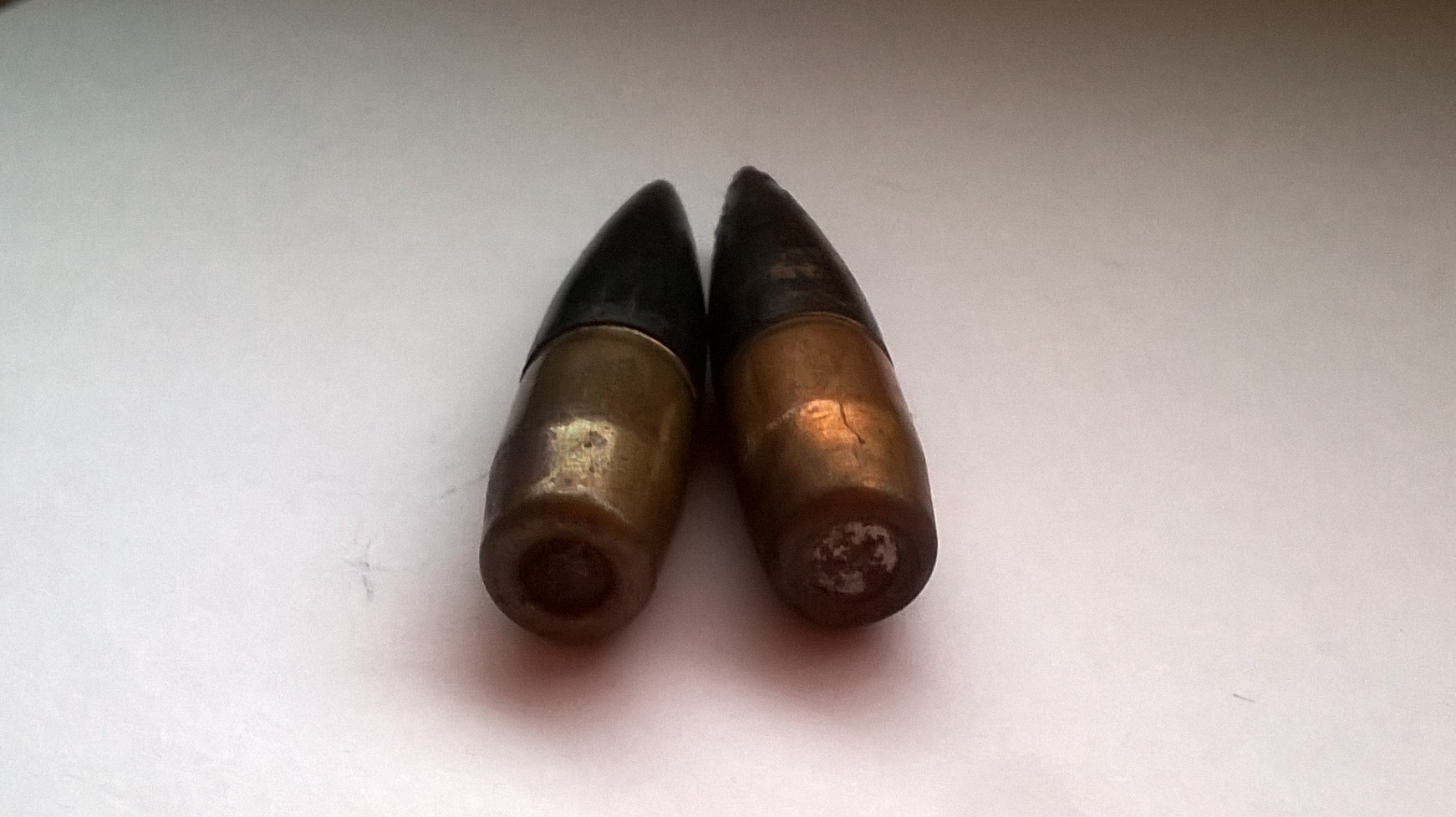 War auch wie letztes mal ein Konvult mit mehreren verschiedenen Patronen...unter anderem war eine SmkH mit roter Ringfuge und schwarzem Geschoss dabei und eine Patrone die komplett schwarz lackiert ist...wenn man die Geschosse von hinten anschaut haben sie beide einen Stahlkern im inneren.Hätt die schwarz lackierte darum auch für eine SmkH gehalten.Sind beide auch mega Magnetisch!